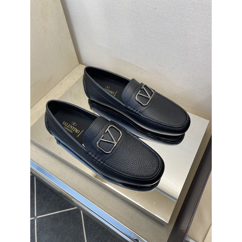 Valentino Garavani VLogo Signature Grainy Leather Loafers In Black