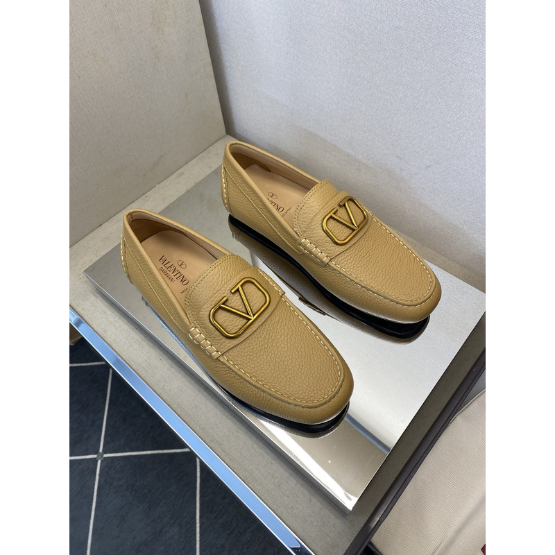 Valentino Garavani VLogo Signature Grainy Leather Loafers Light Brown