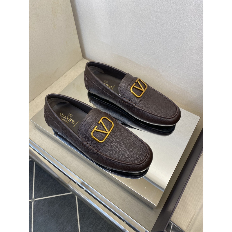 Valentino Garavani VLogo Signature Grainy Leather Loafers In Dark Brown