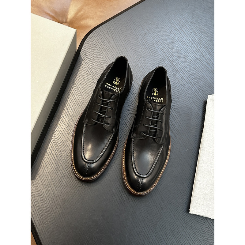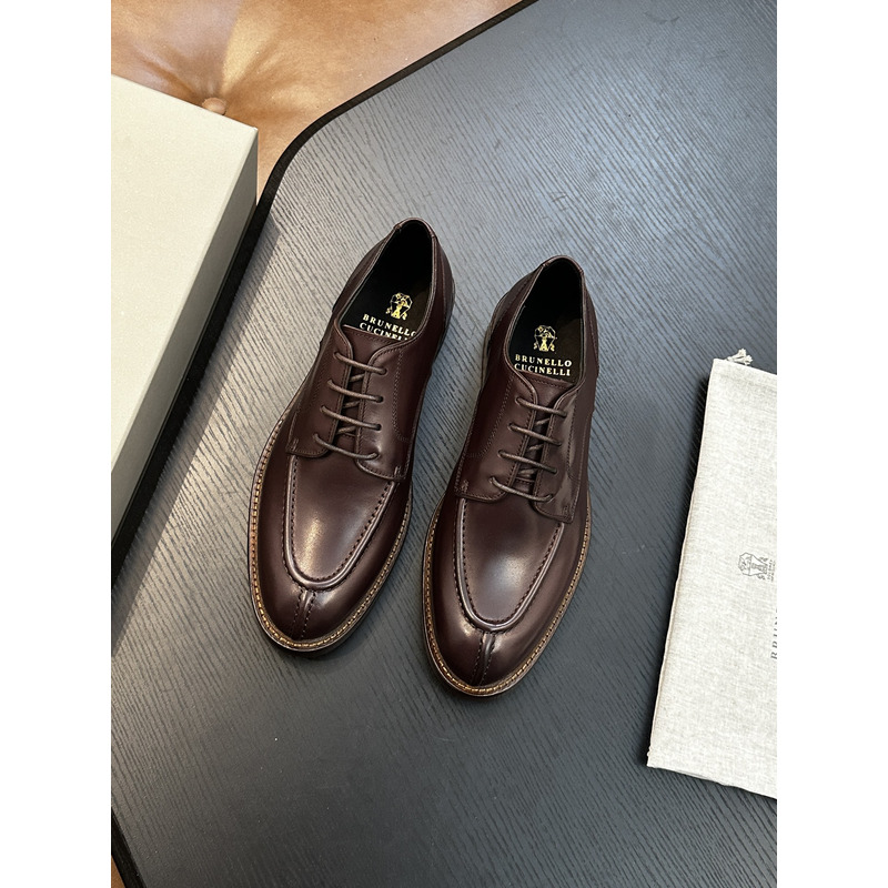 Brunello Cucinelli Leather Derby Loafers In Dark Brown
