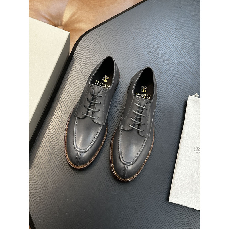 Brunello Cucinelli Leather Derby Loafers In Grey