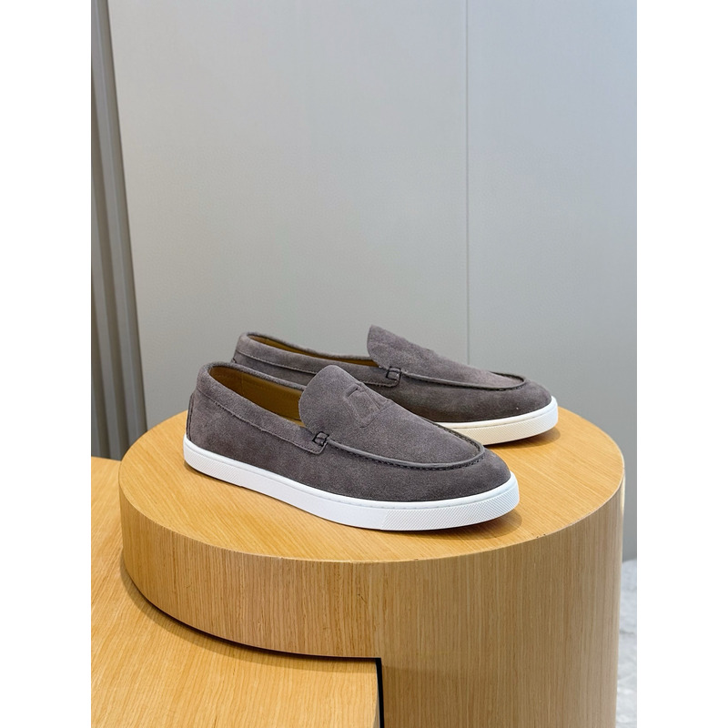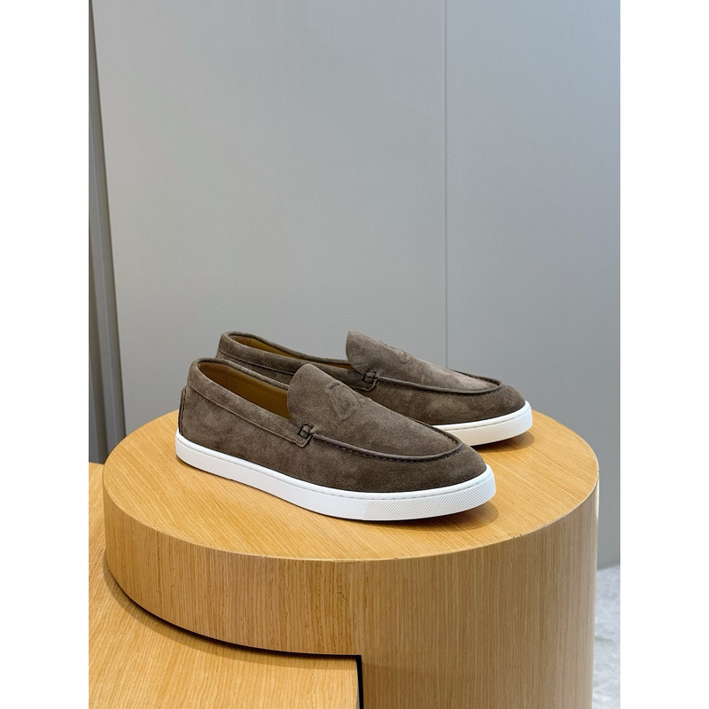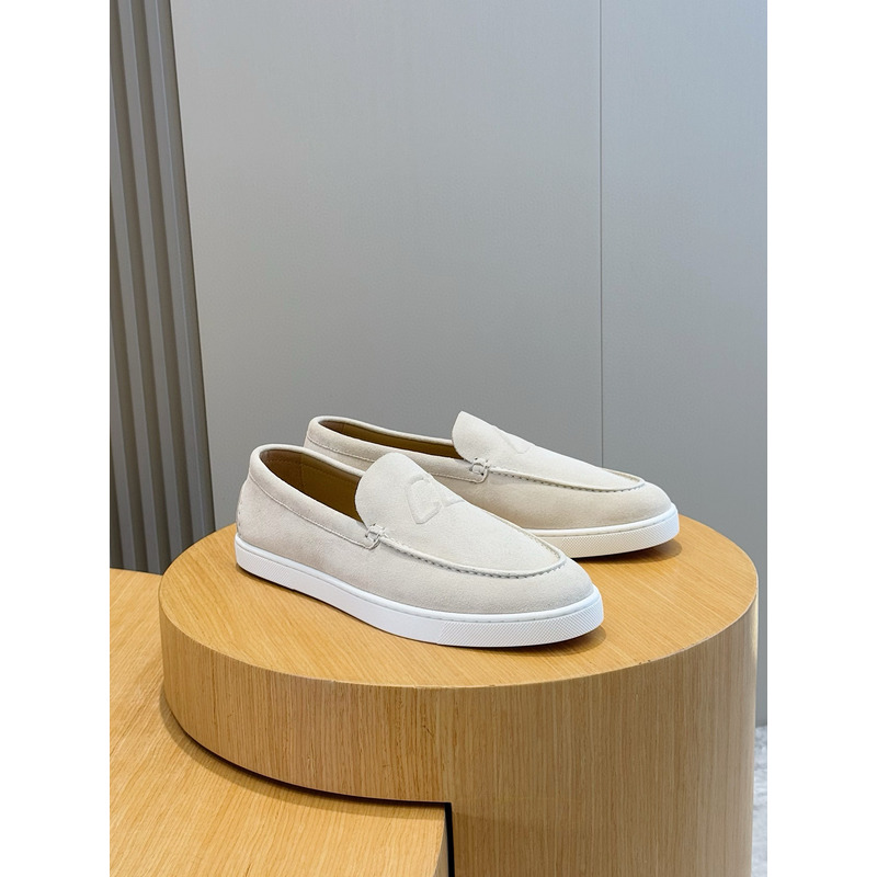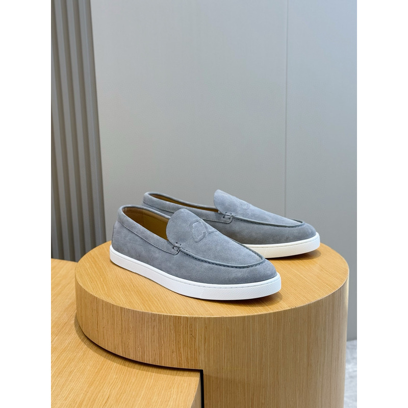 Christian Louboutin Varsiboat Leather Boat Shoes Grey / White