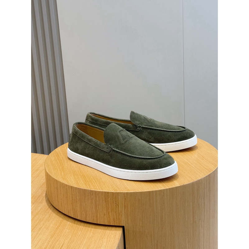 Christian Louboutin Varsiboat Leather Boat Shoes Dark Green
