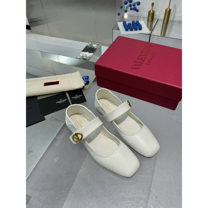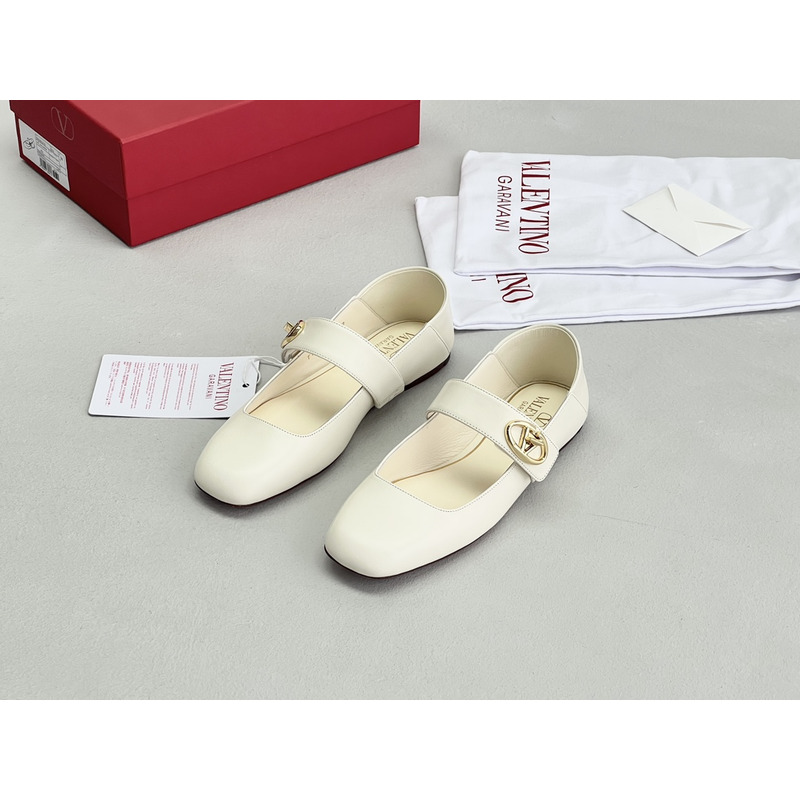 Valentino Garavani VLogo Locker Mary-Jane Ballerina Shoes White