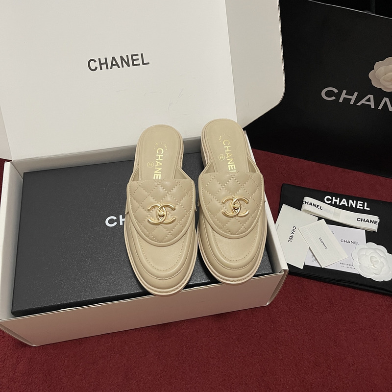Chanel Quilted CC Turnlock Lambskin Mules Light Beige