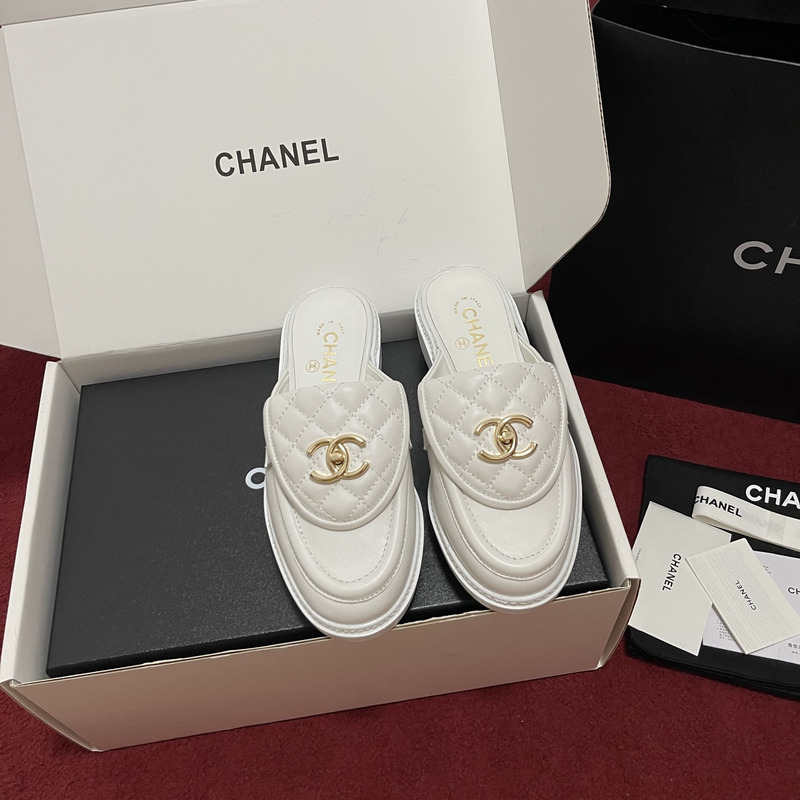 Chanel Quilted CC Turnlock Lambskin Mules White