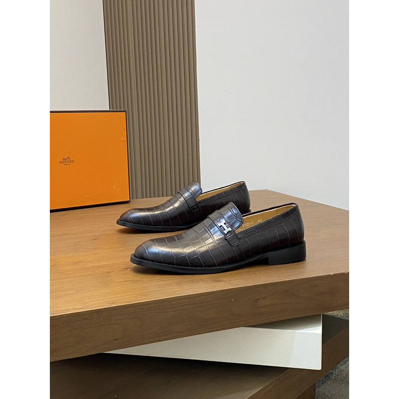 Hermes Julio loafer In Black Crocodile-Embossed Leather
