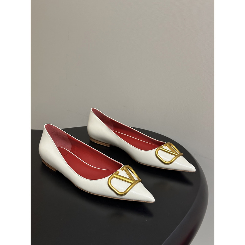 Valentino VLogo Signature Calfskin Ballet Flats In White/Red