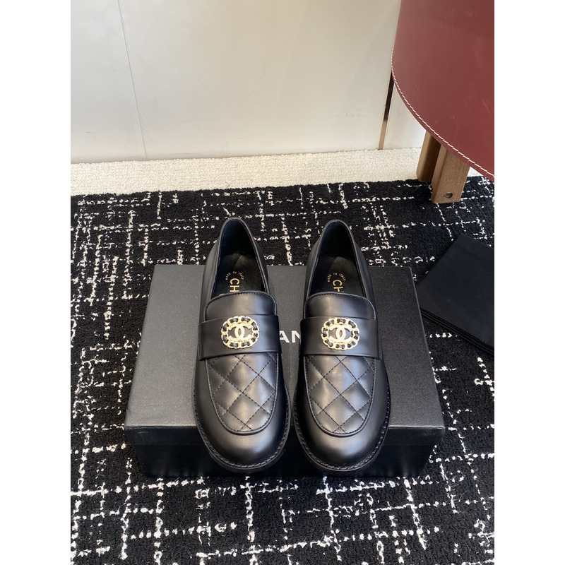 Chanel Moccasins Quilted In Black With CC Turnlock