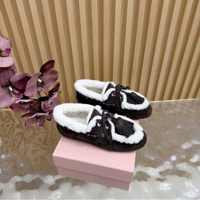 Miu Miu Shearling-Lined Suede Moccasin Shoes In Brown