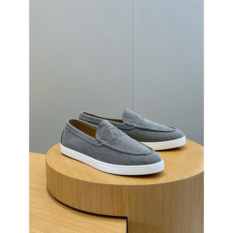 Christian Louboutin Varsiboat Leather Boat Shoes Grey
