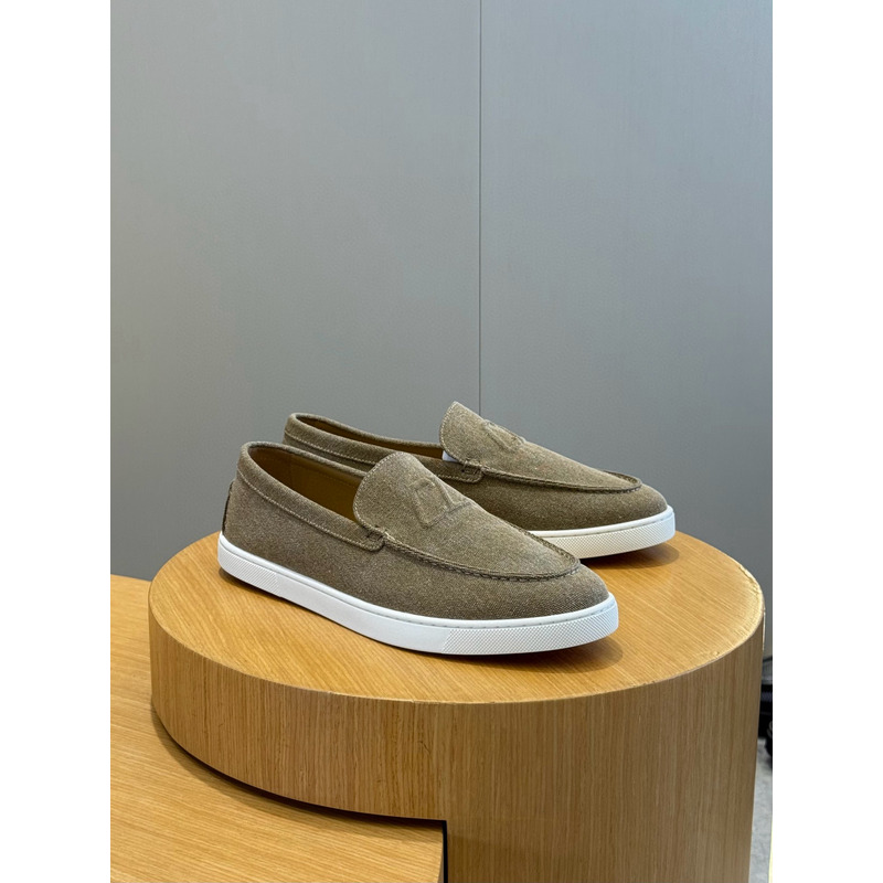 Christian Louboutin Varsiboat Leather Boat Shoes Khaki