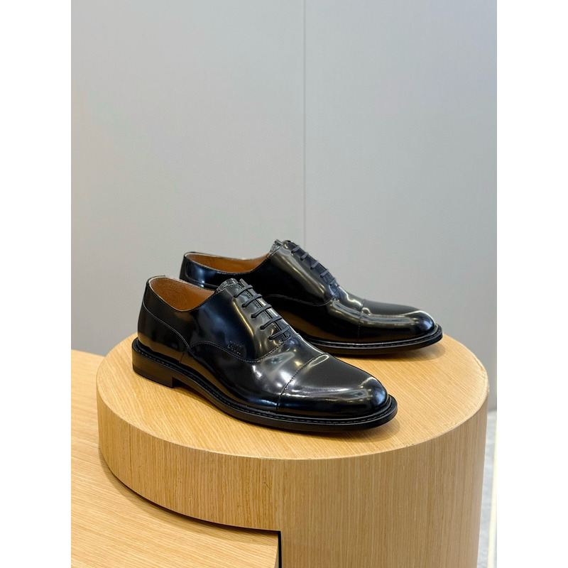 Dior Homme Polished Leather Cap-Toe Oxford Shoes In Black