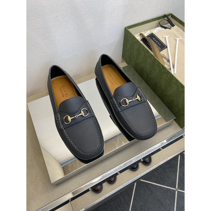 Gucci Loafer Dark Gray Pebbled Leather With Gold-Tone Horsebit