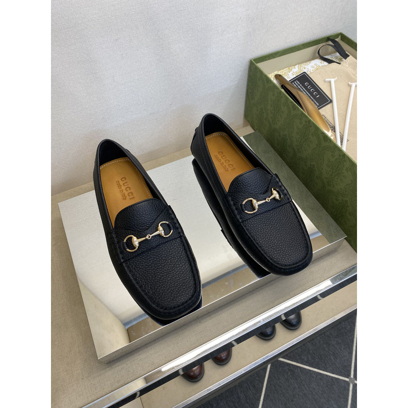 Gucci Loafer Black Pebbled Leather With Gold-Tone Horsebit