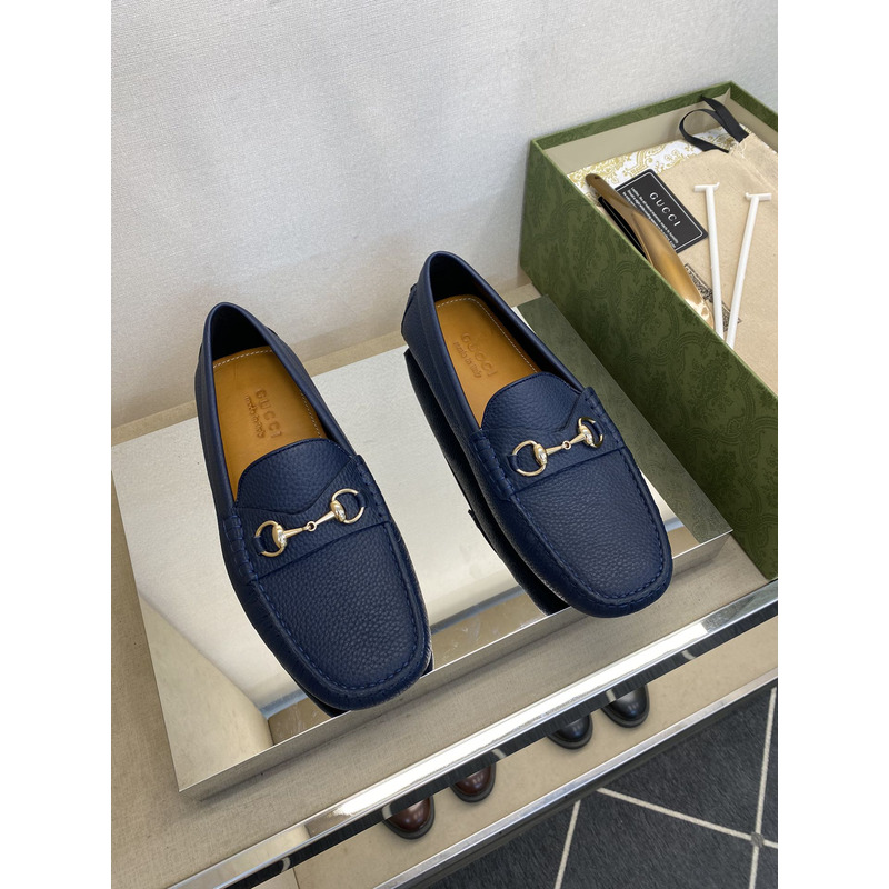 Gucci Loafer Navy Blue Pebbled Leather With Gold-Tone Horsebit