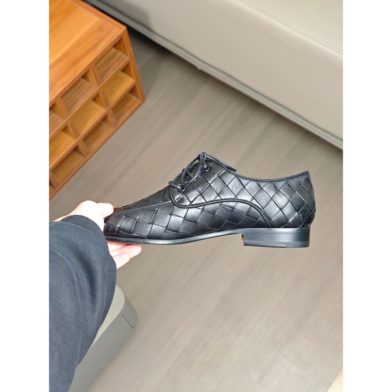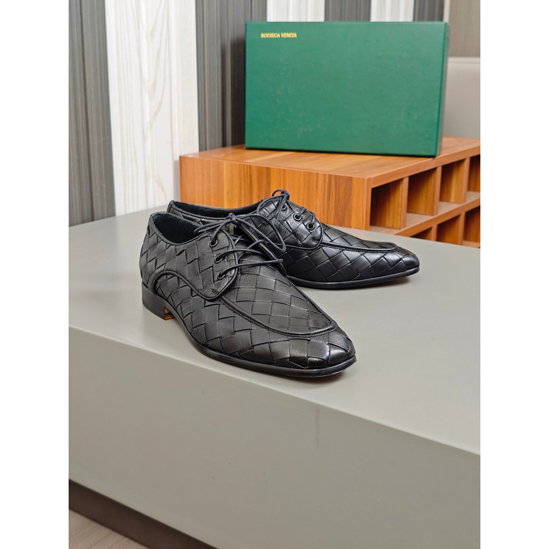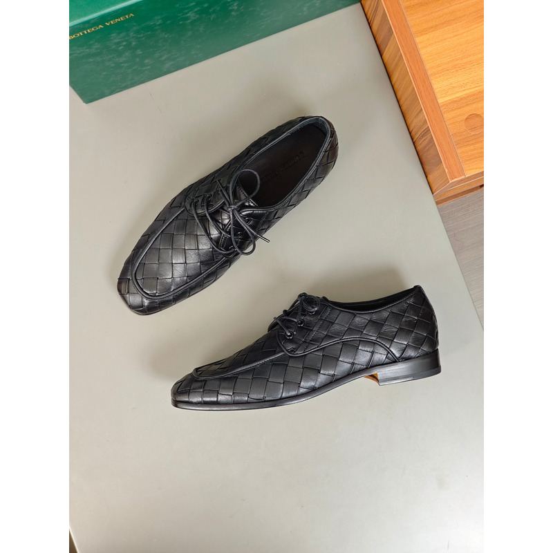 Bottega Veneta Intrecciato Leather Derby Loafers In Black
