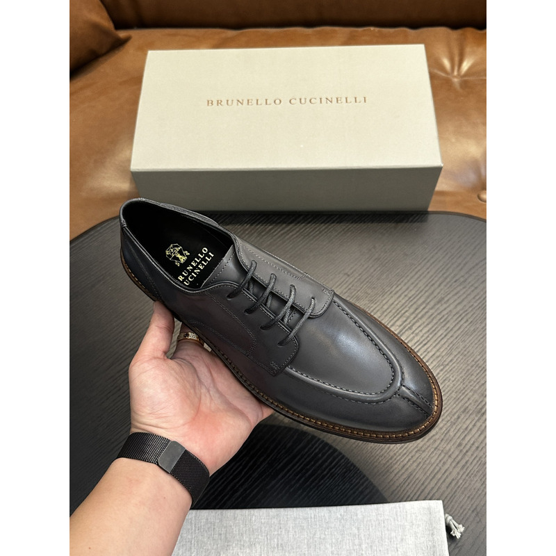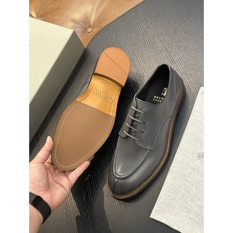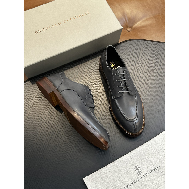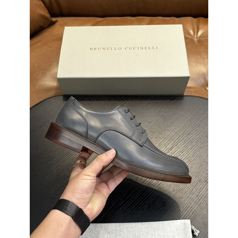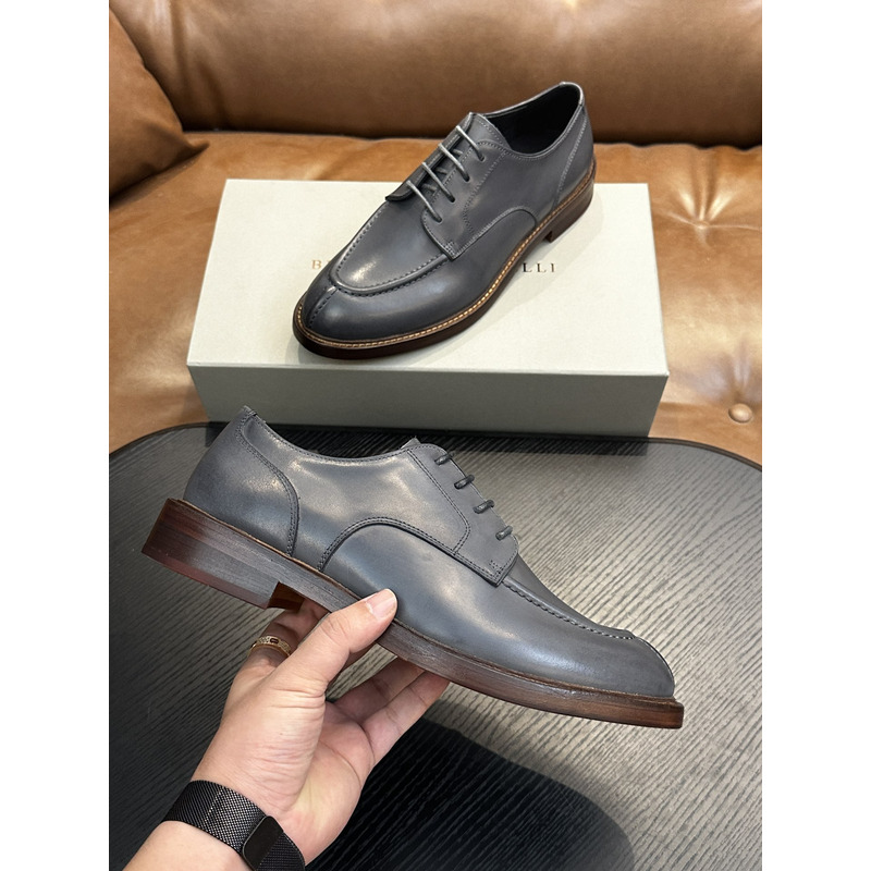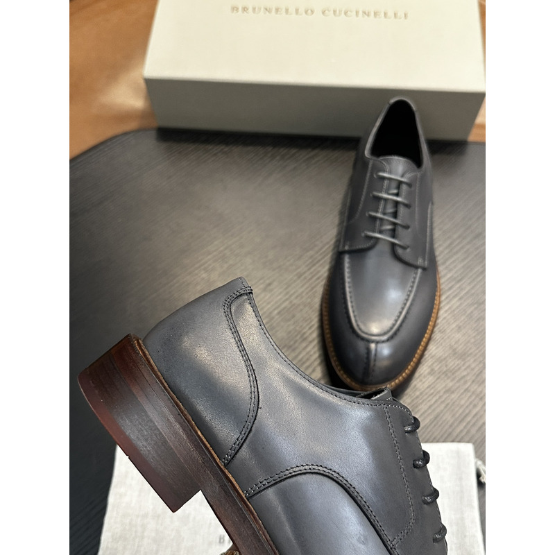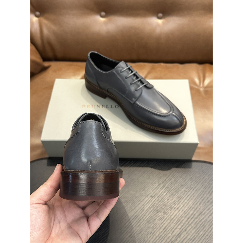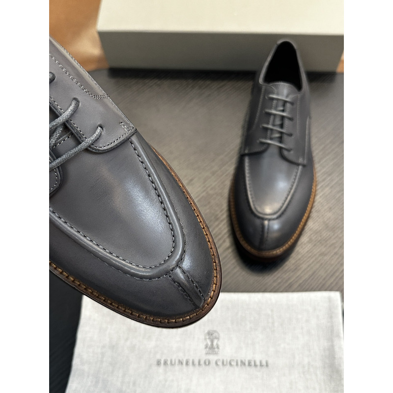 Brunello Cucinelli Leather Derby Loafers In Grey