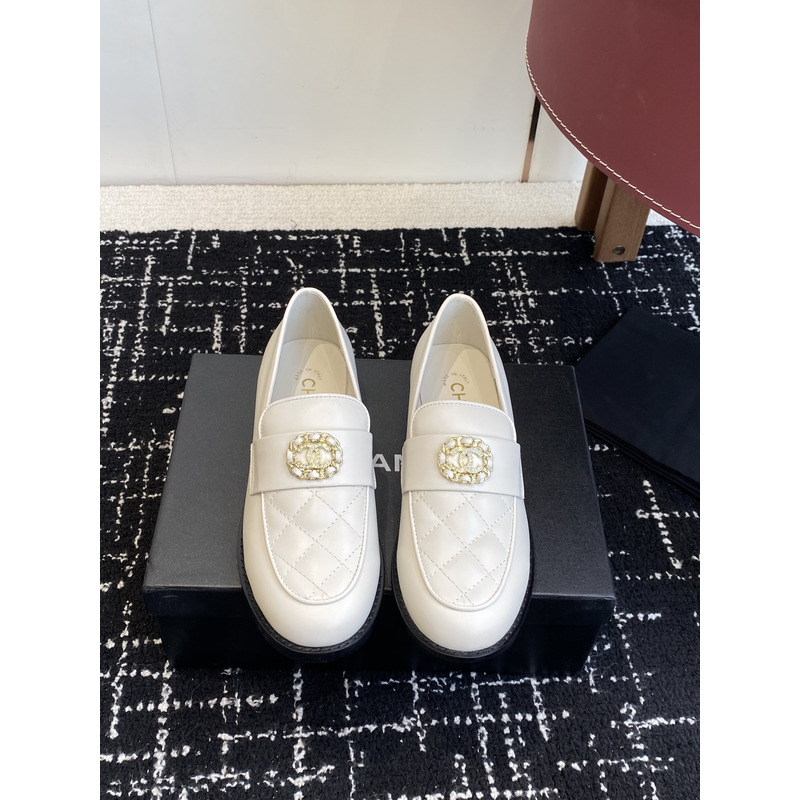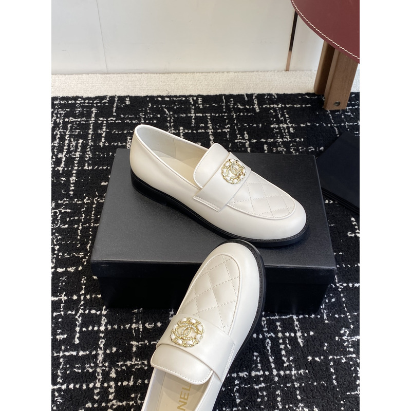 Chanel Off-White Leather Quilted Loafers With Pearl-Embellished CC Logo