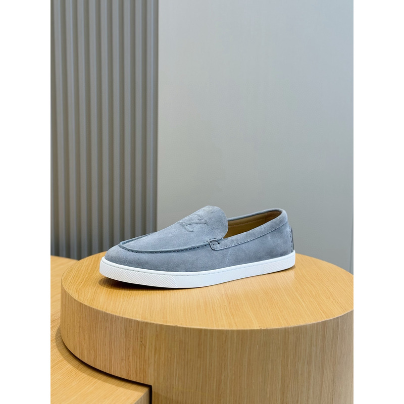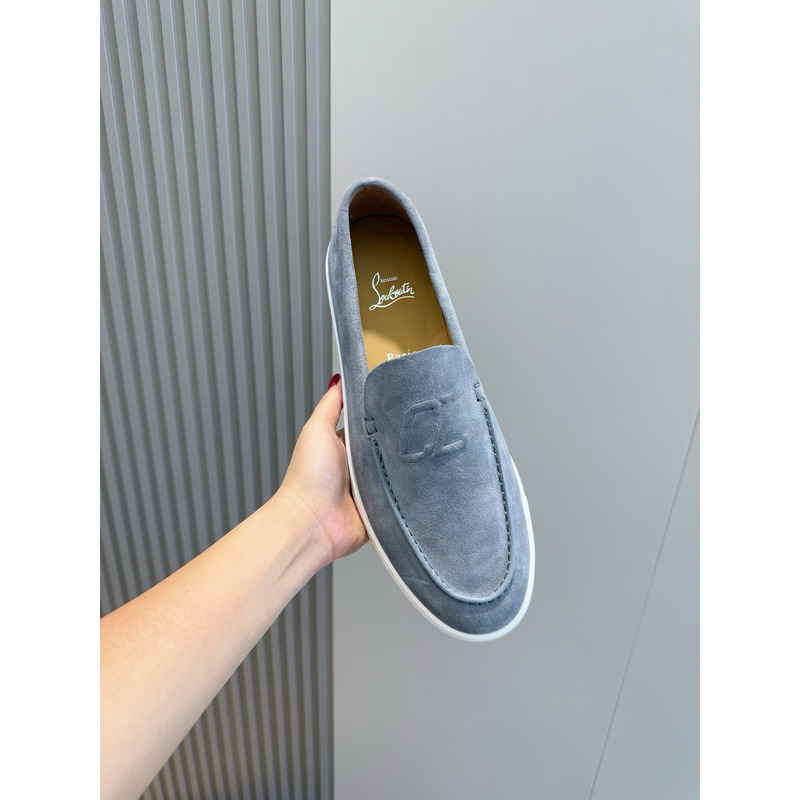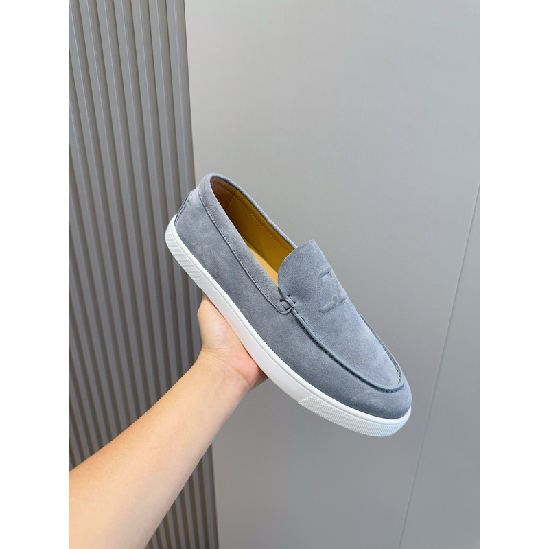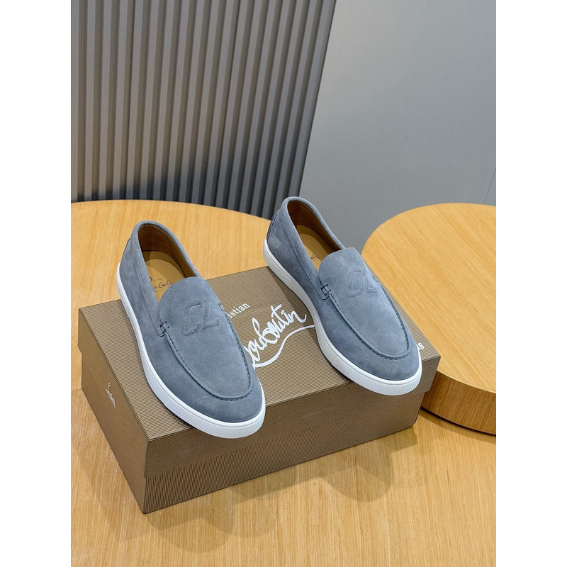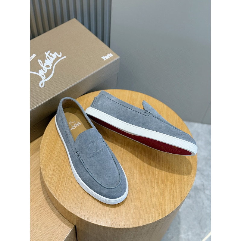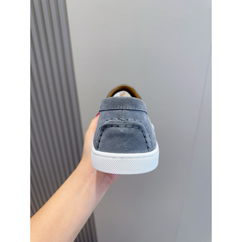 Christian Louboutin Varsiboat Leather Boat Shoes Grey / White
