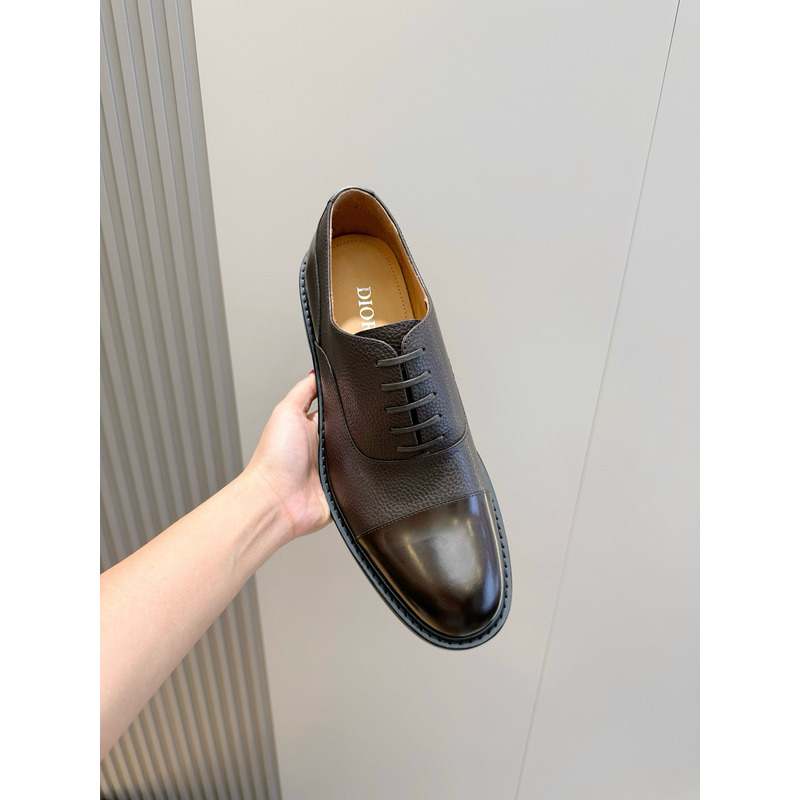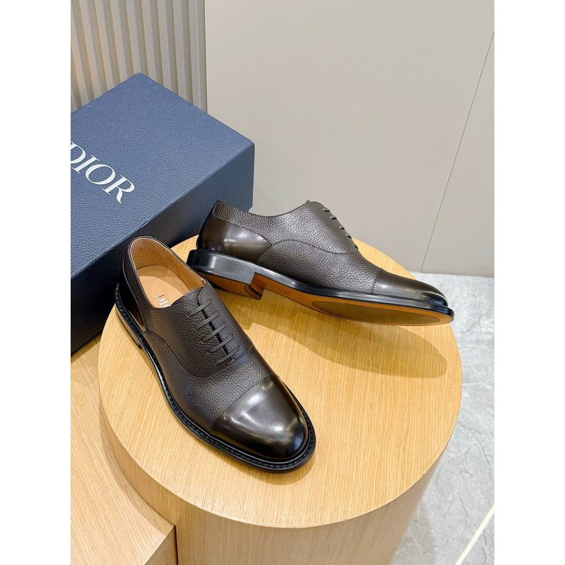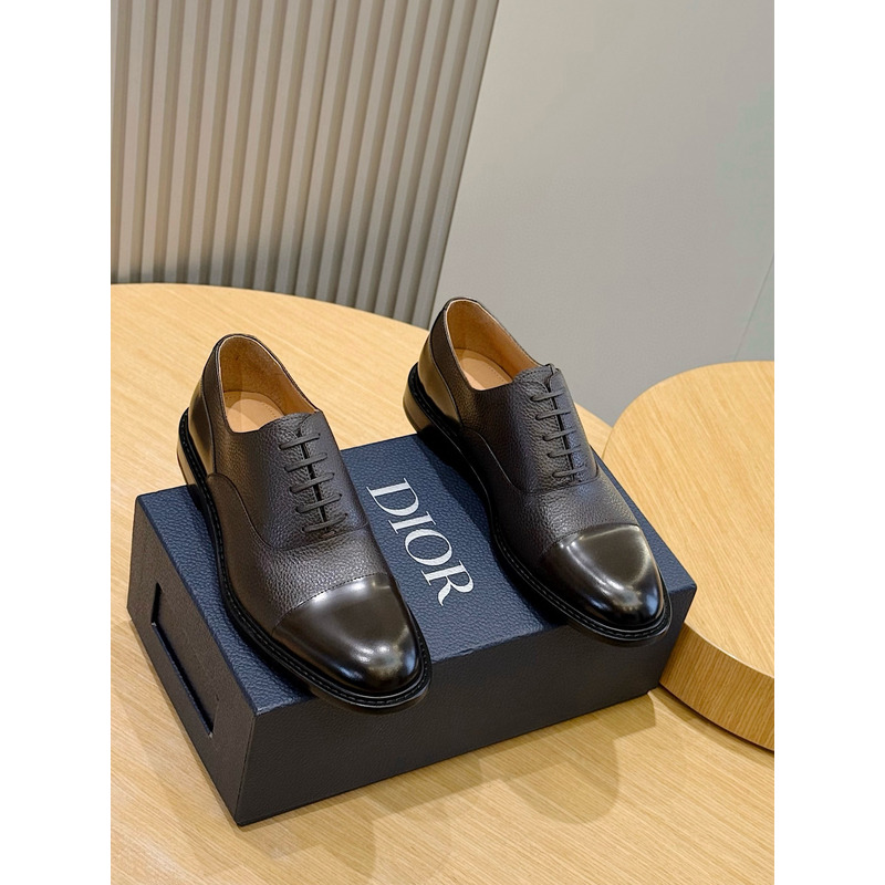 Dior Homme Cap-Toe Leather Derby Shoes In Dark Grey