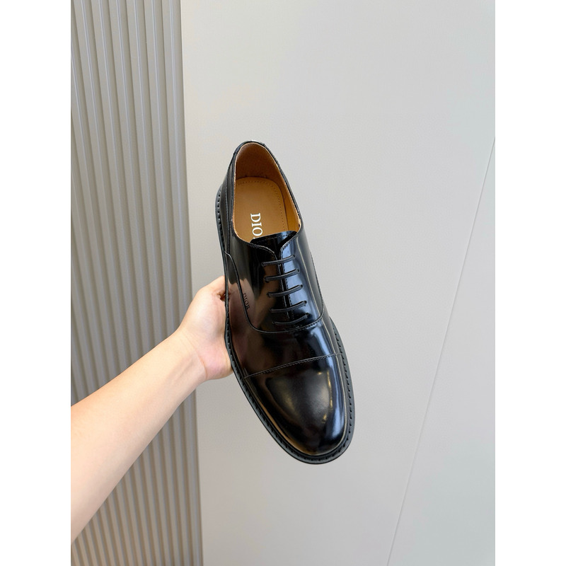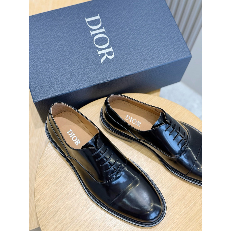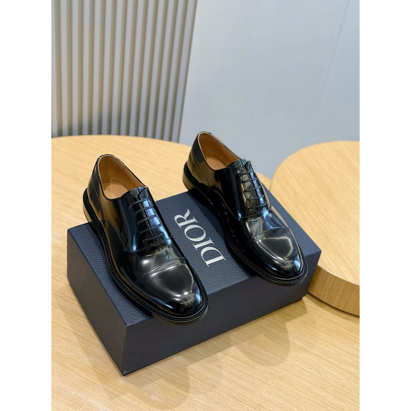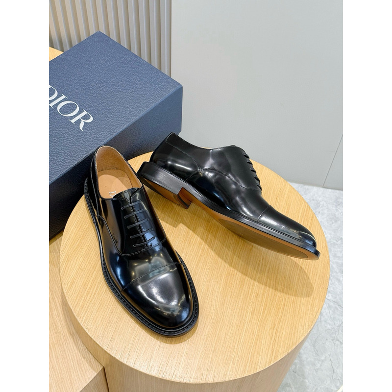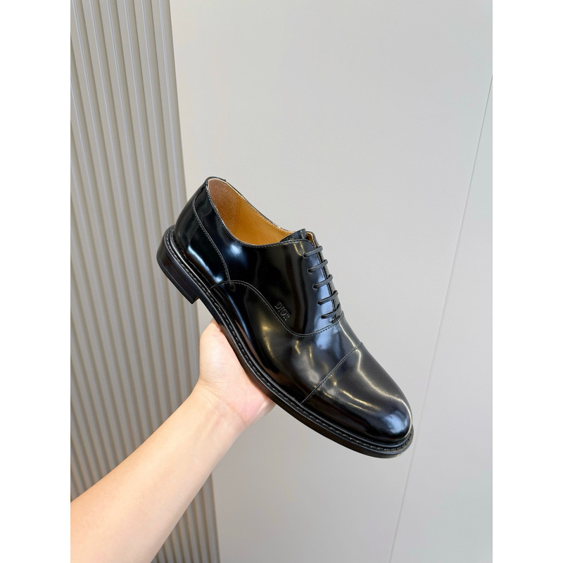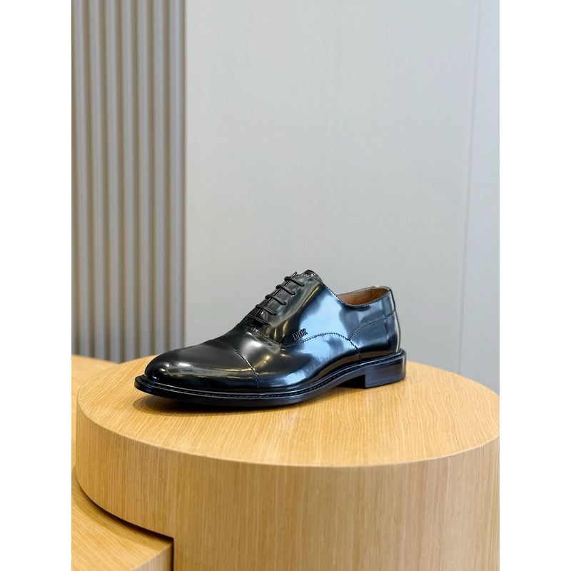 Dior Homme Polished Leather Cap-Toe Oxford Shoes In Black