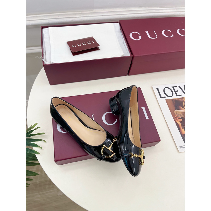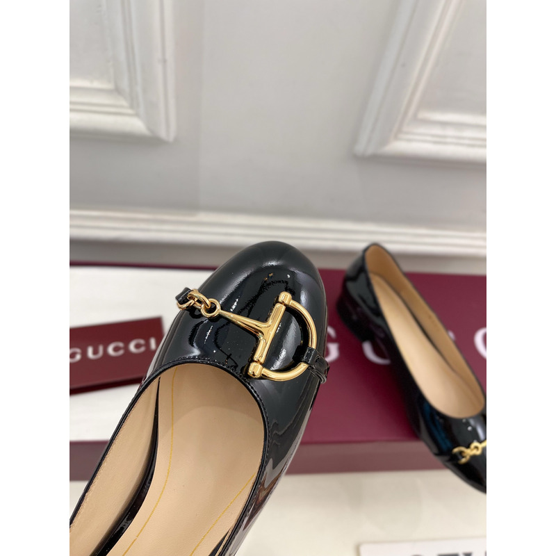 Gucci Ballet Flat With Half Horsebit Variation Black Patent Leather