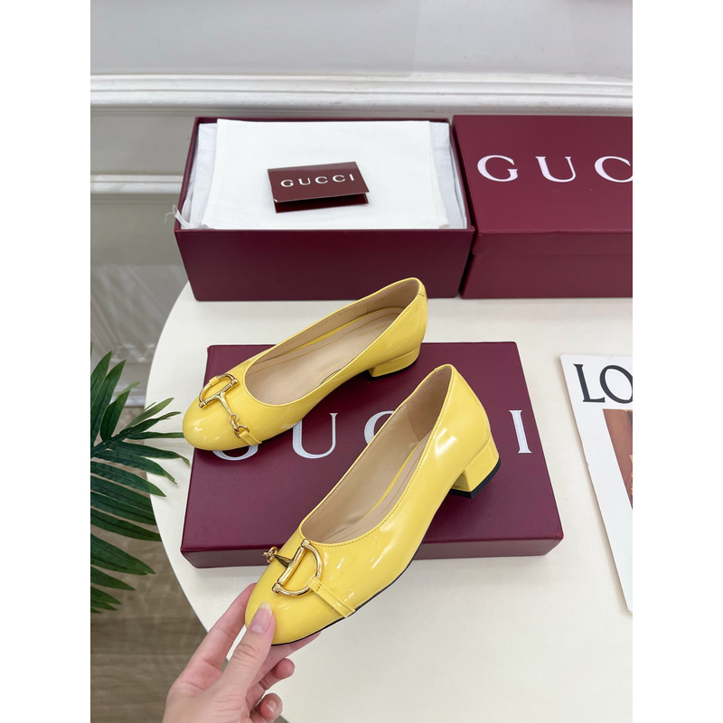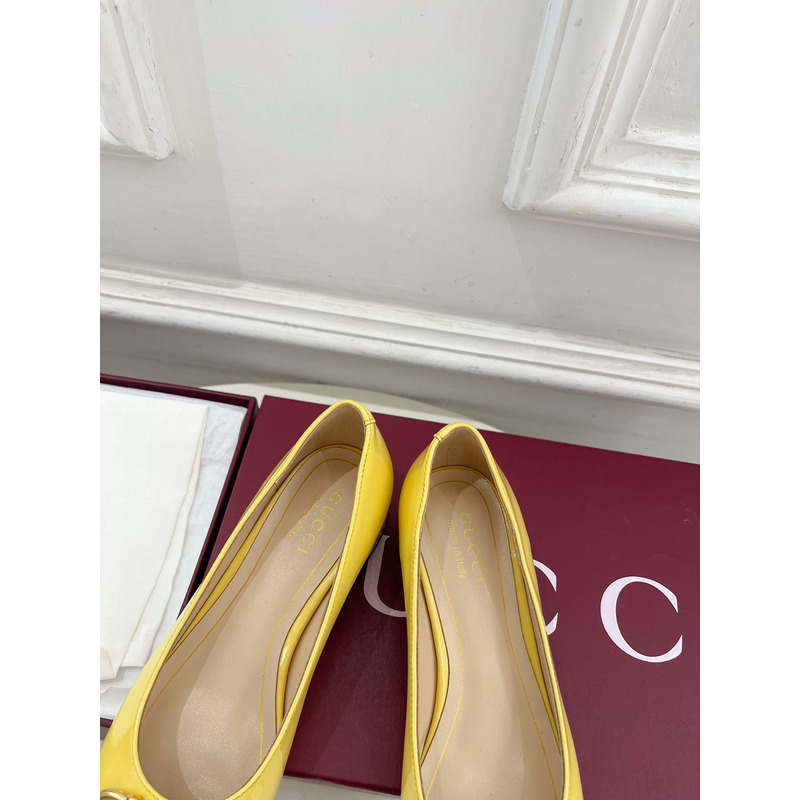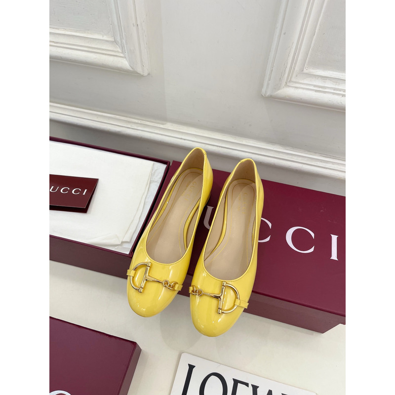Gucci Ballet Flat With Half Horsebit Variation Yellow Patent Leather