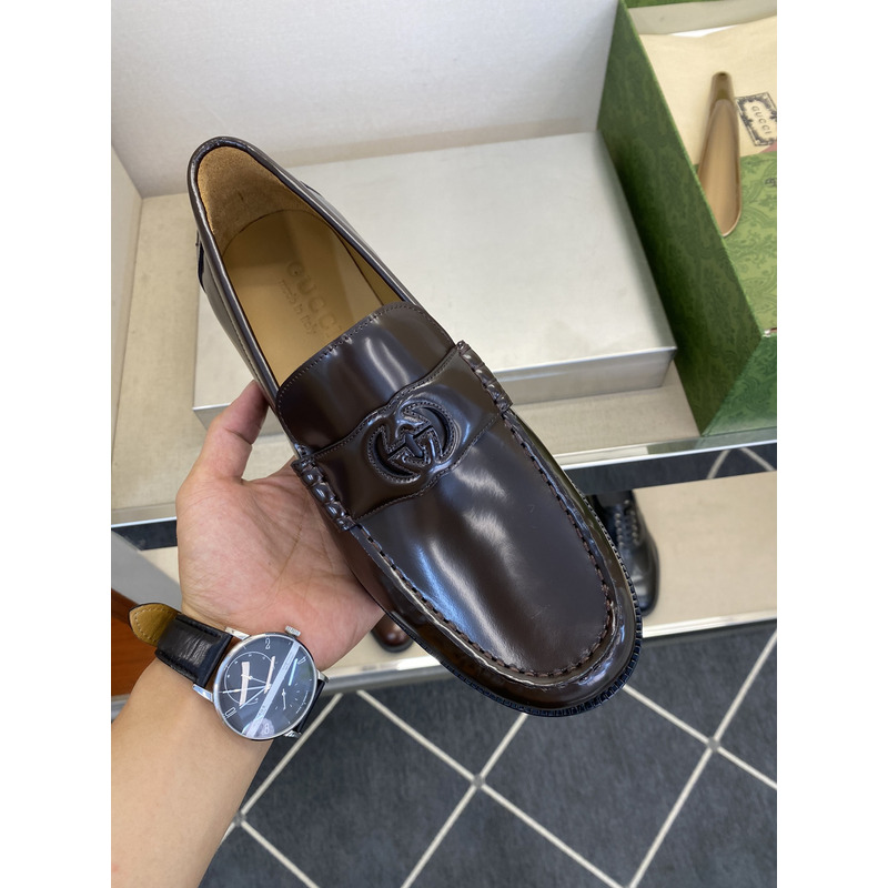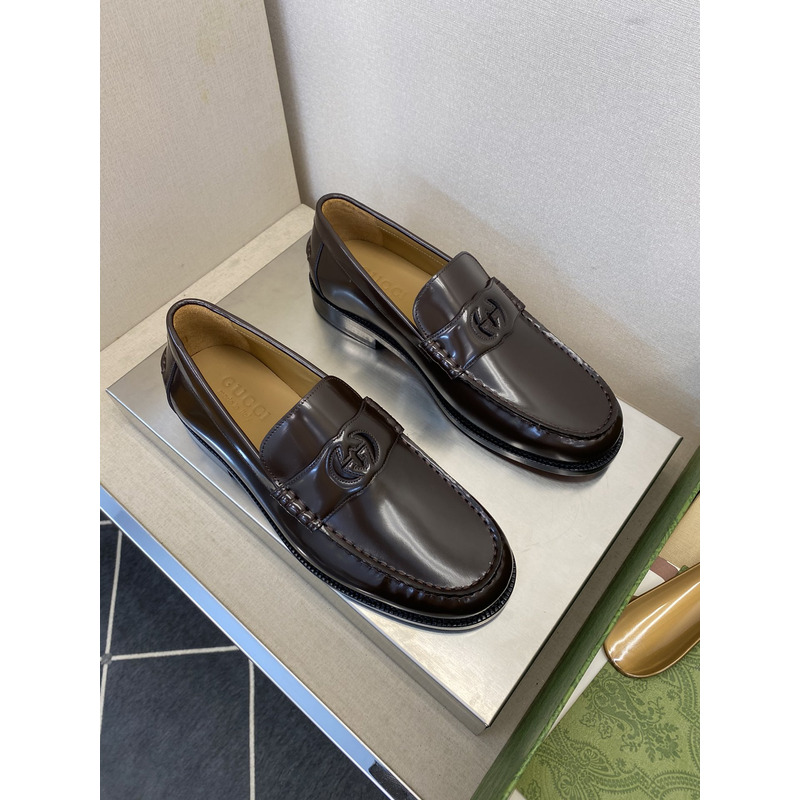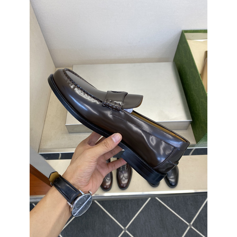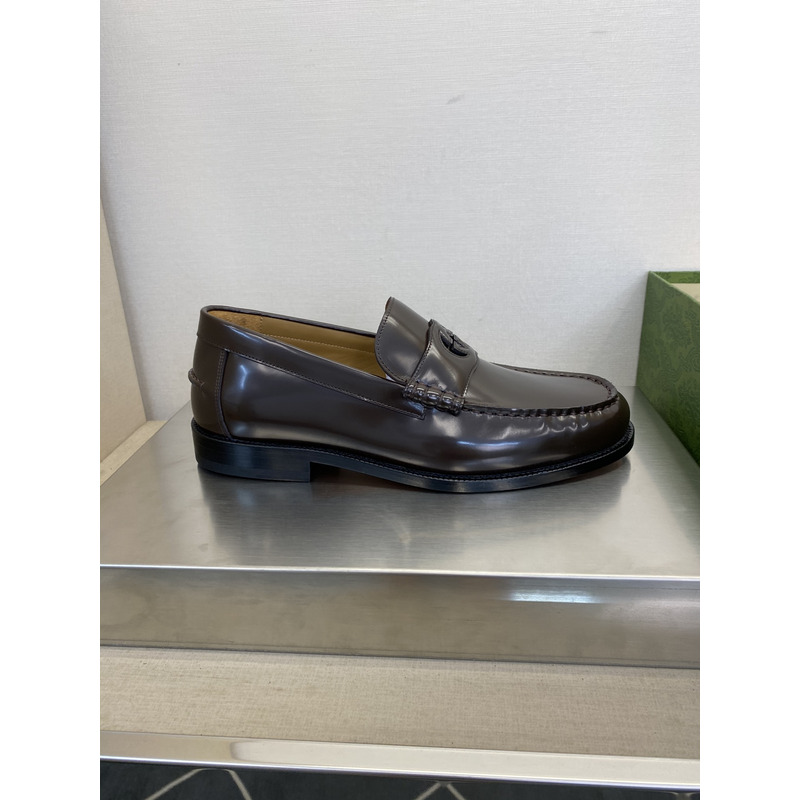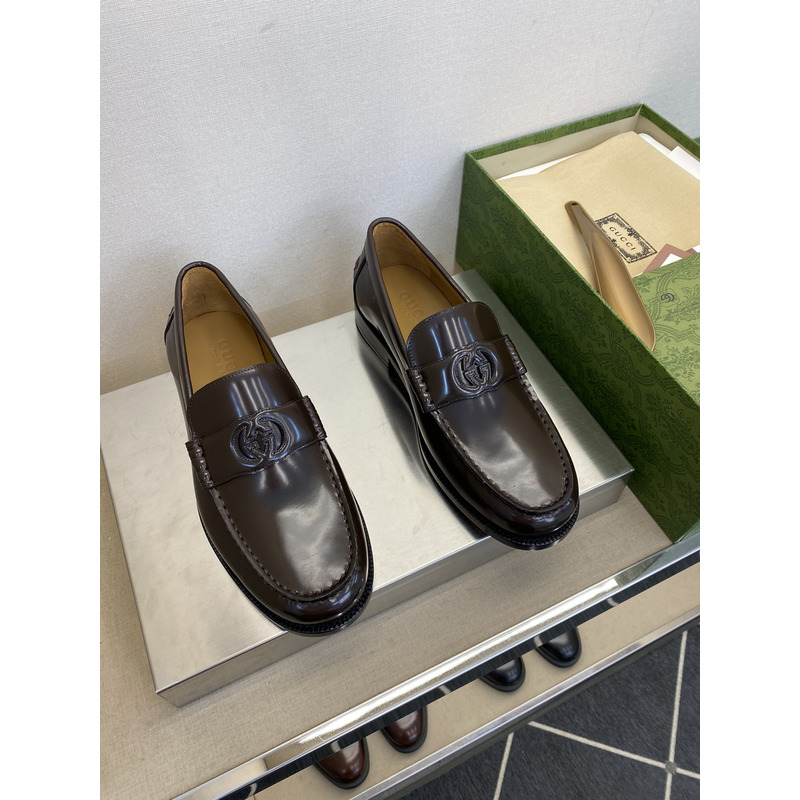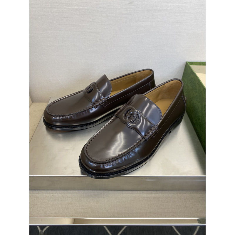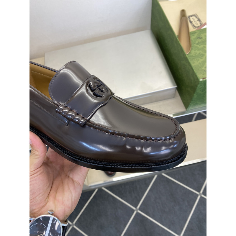 Gucci Dark Brown Polished Leather GG Interlocking Penny Loafer
