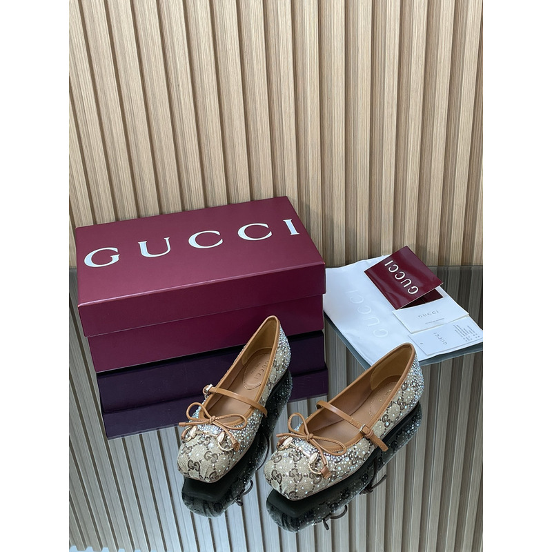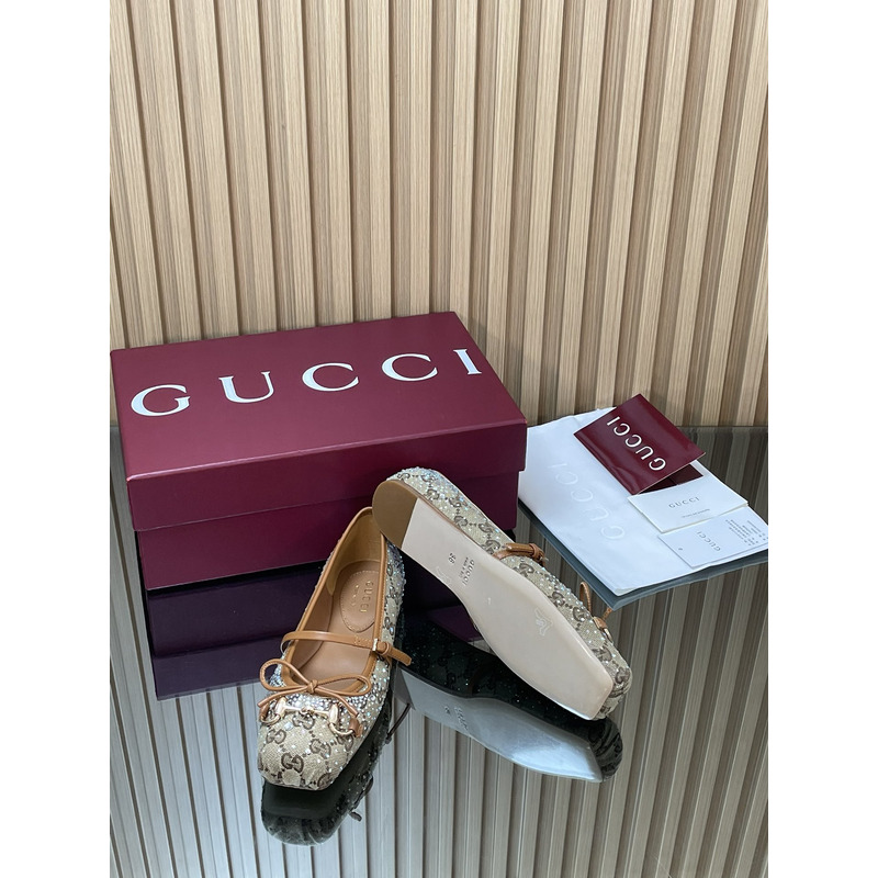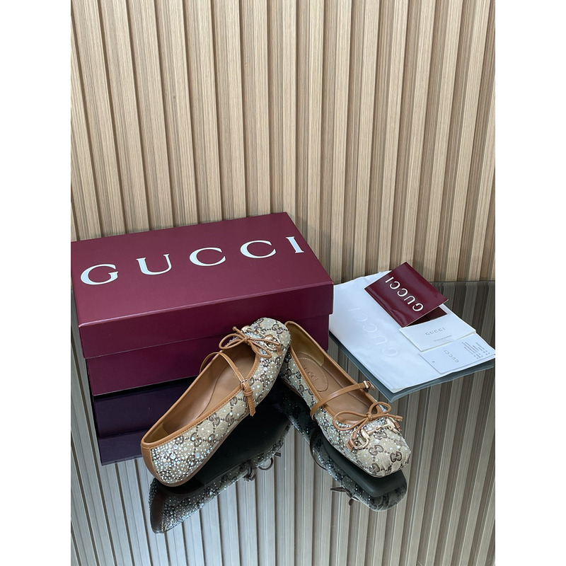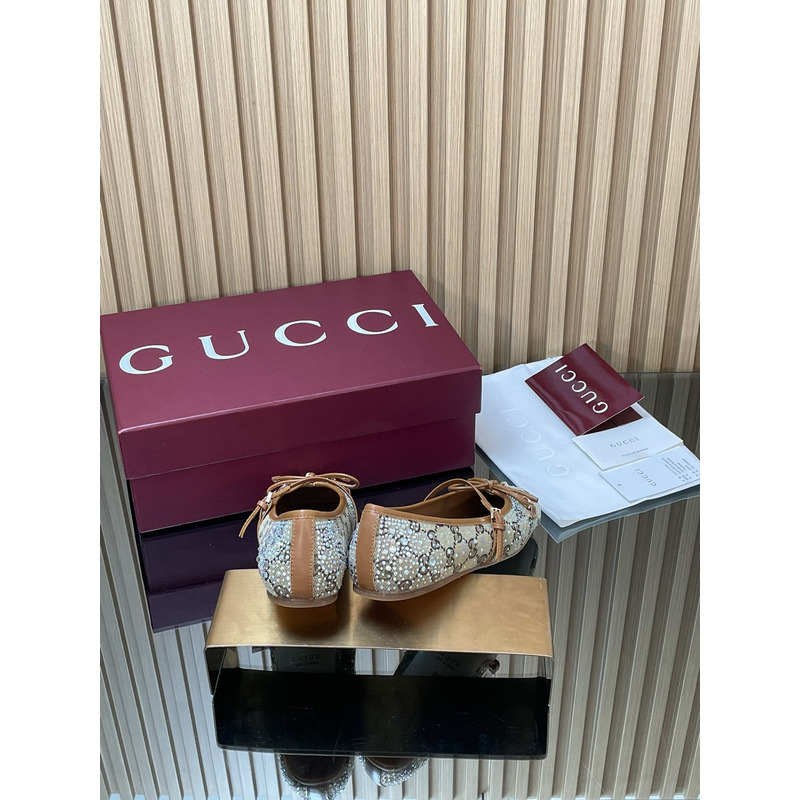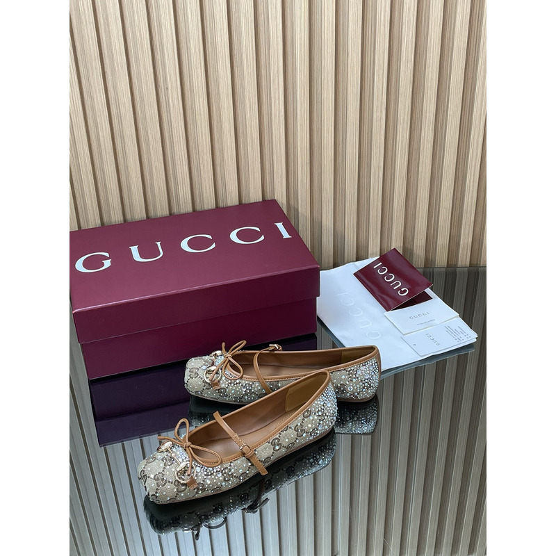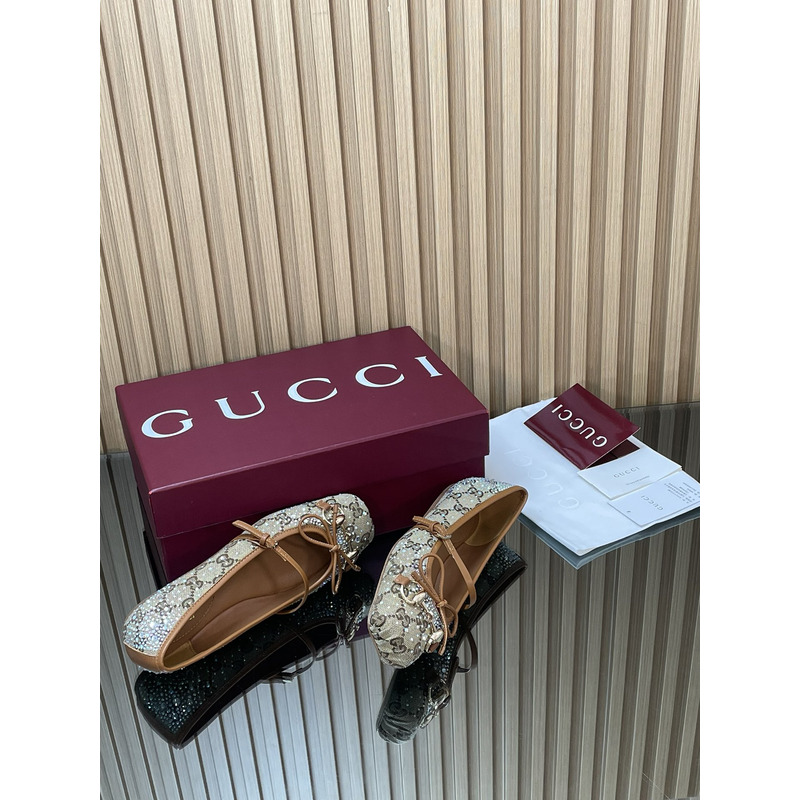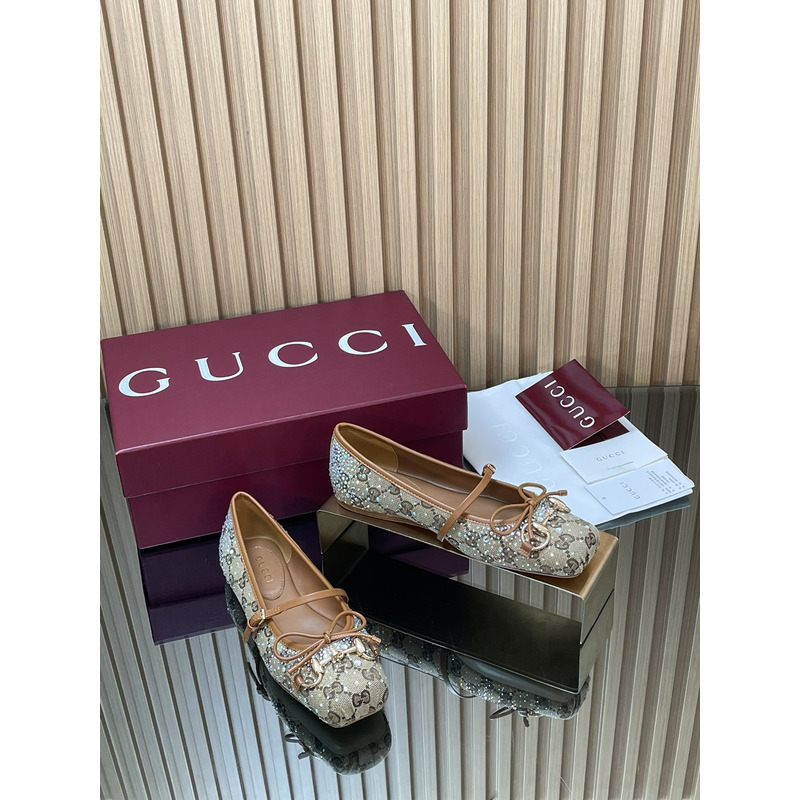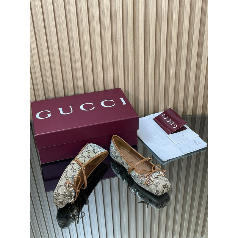 Gucci GG Crystal Gucci Horsebit Ballet Flat In Beige And Dark Brown