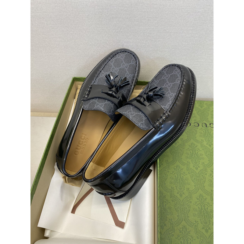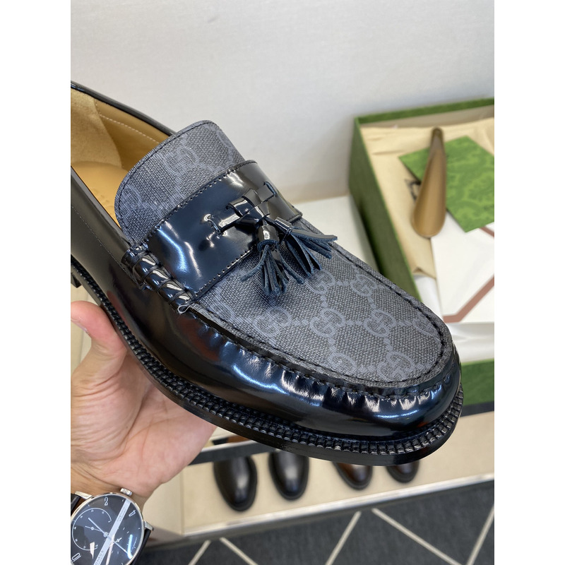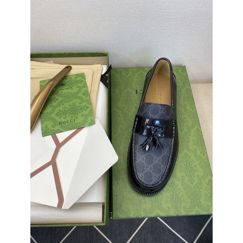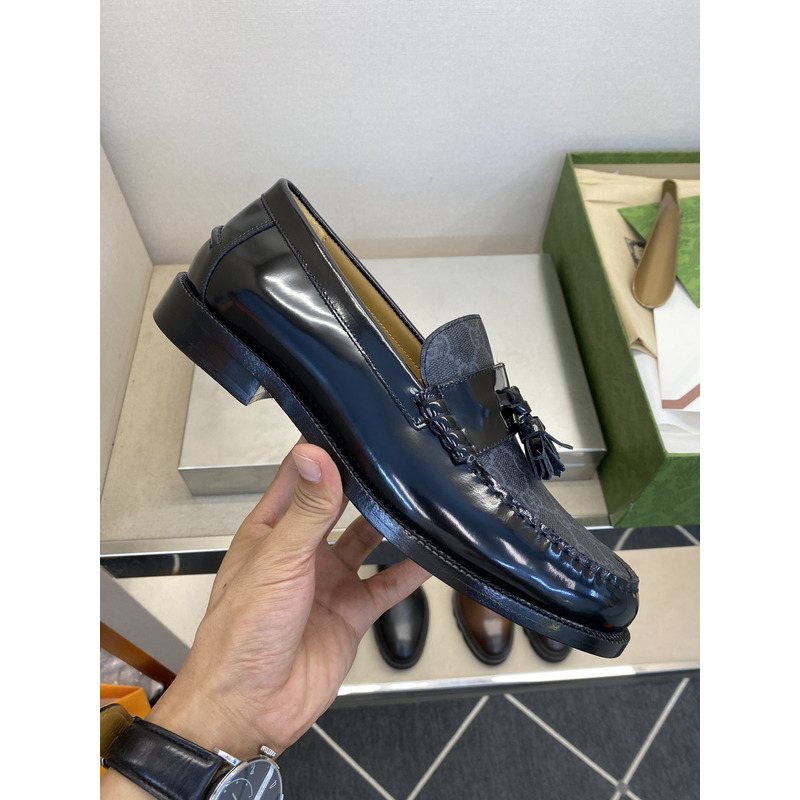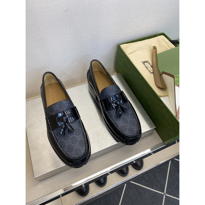 Gucci Kaveh GG Supreme Leather Tassel Loafers Shoes Black