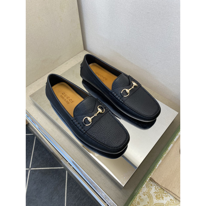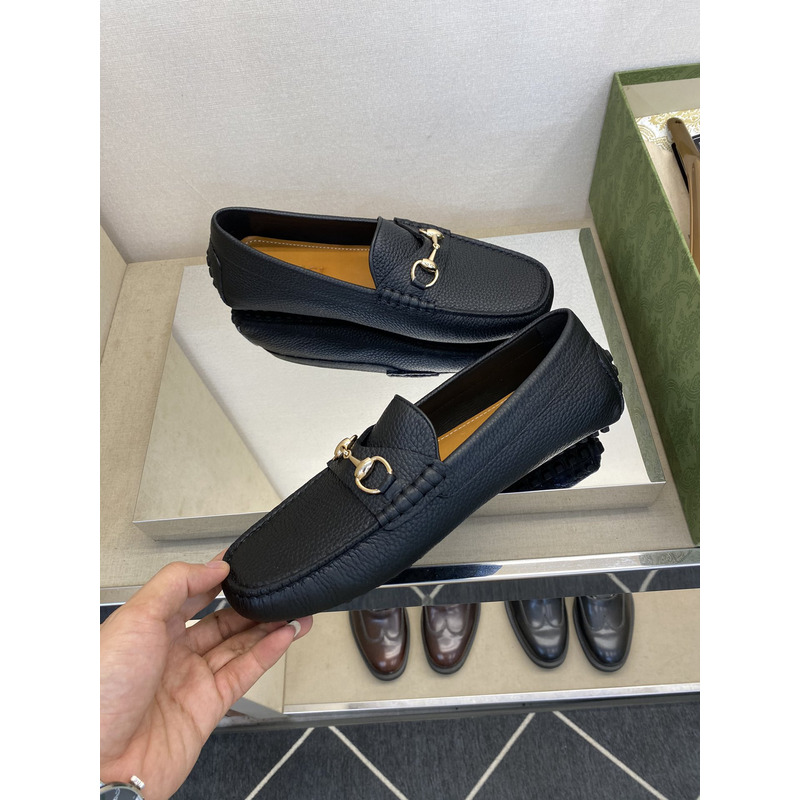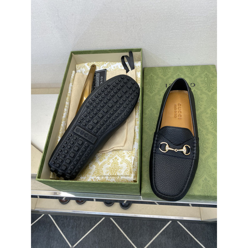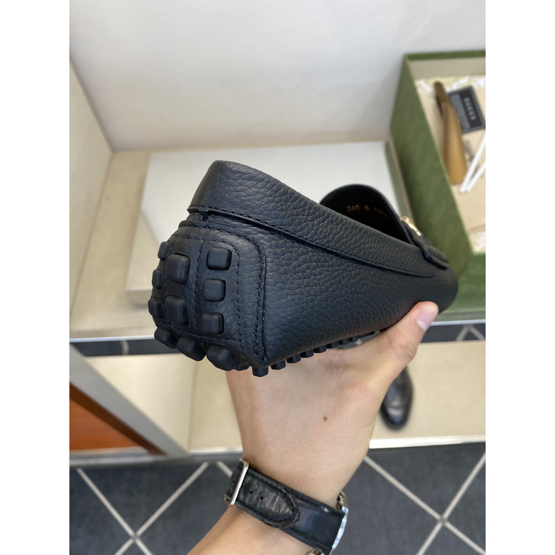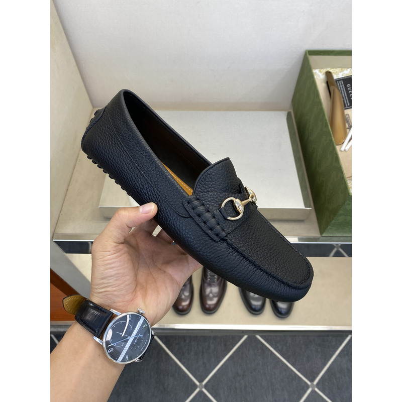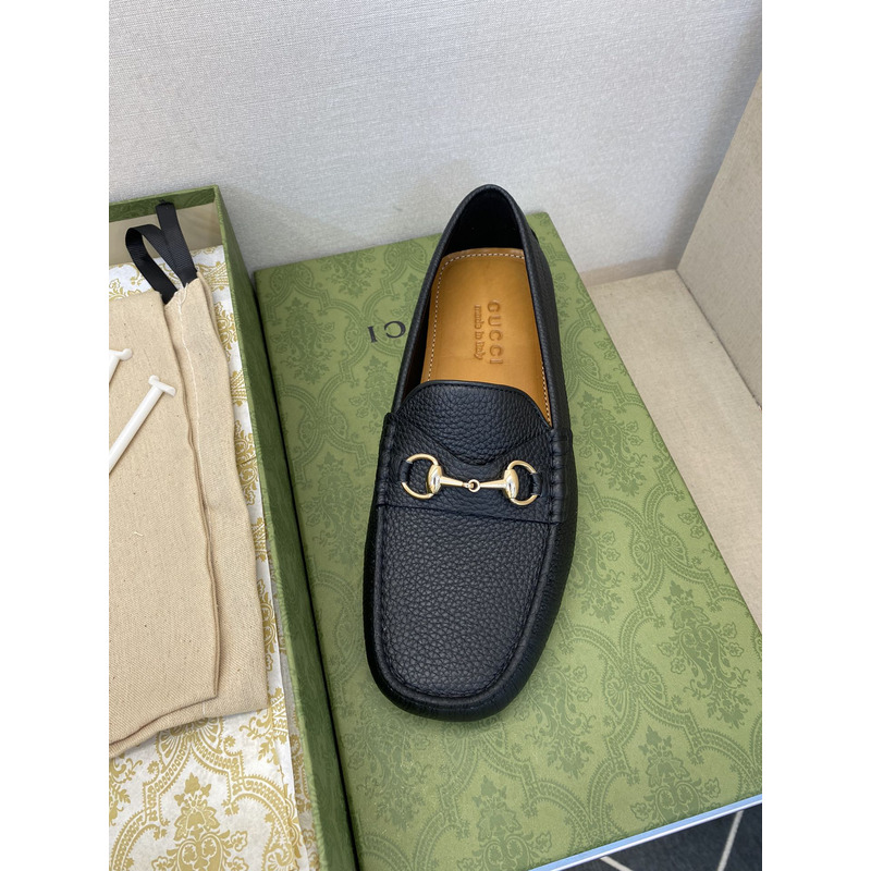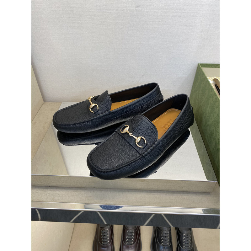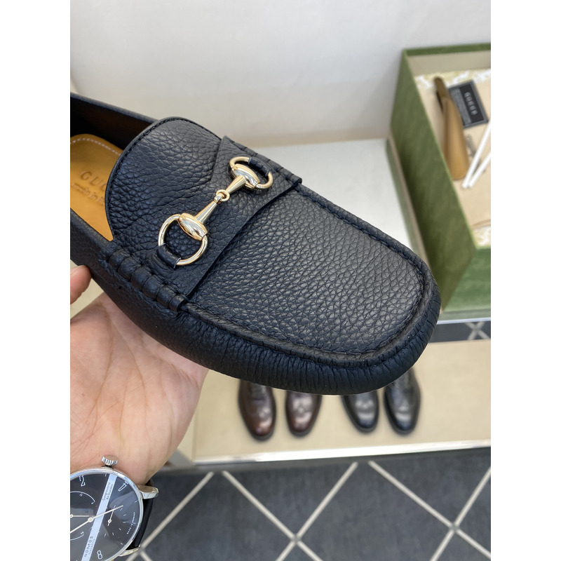 Gucci Loafer Black Pebbled Leather With Gold-Tone Horsebit