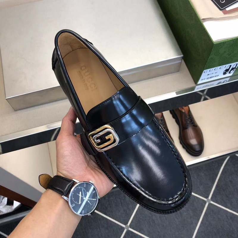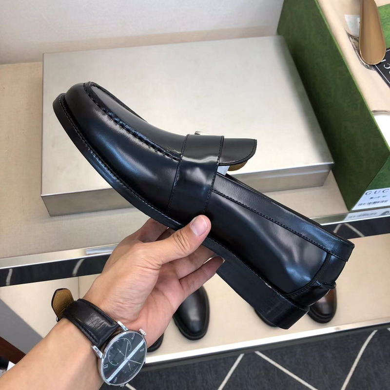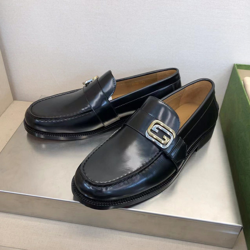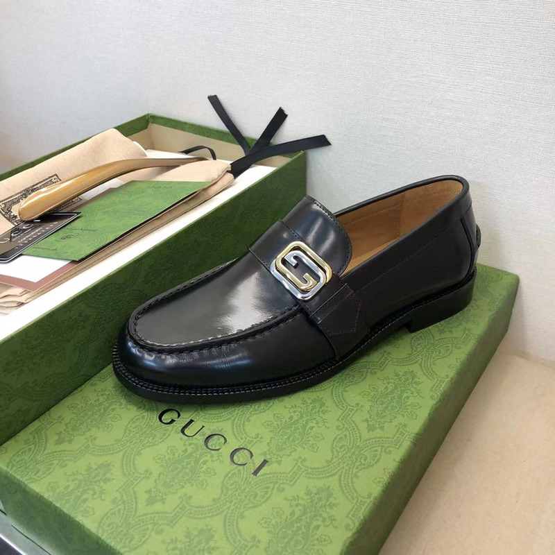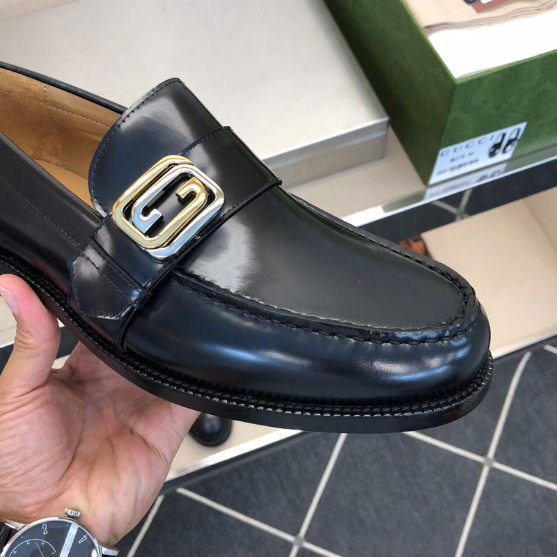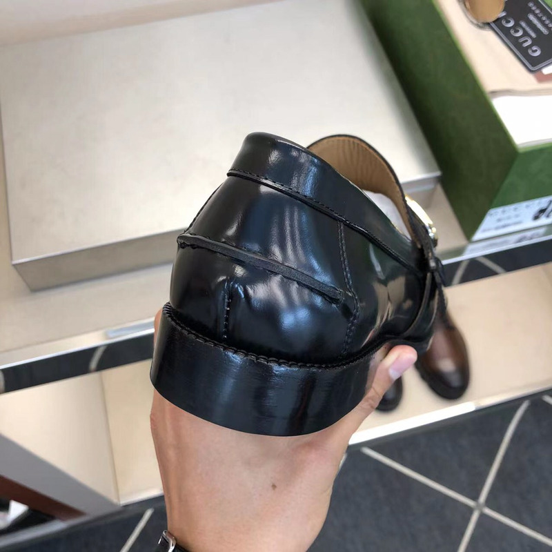 Gucci Loafer Black Polished Leather With Gold-Tone G Buckle