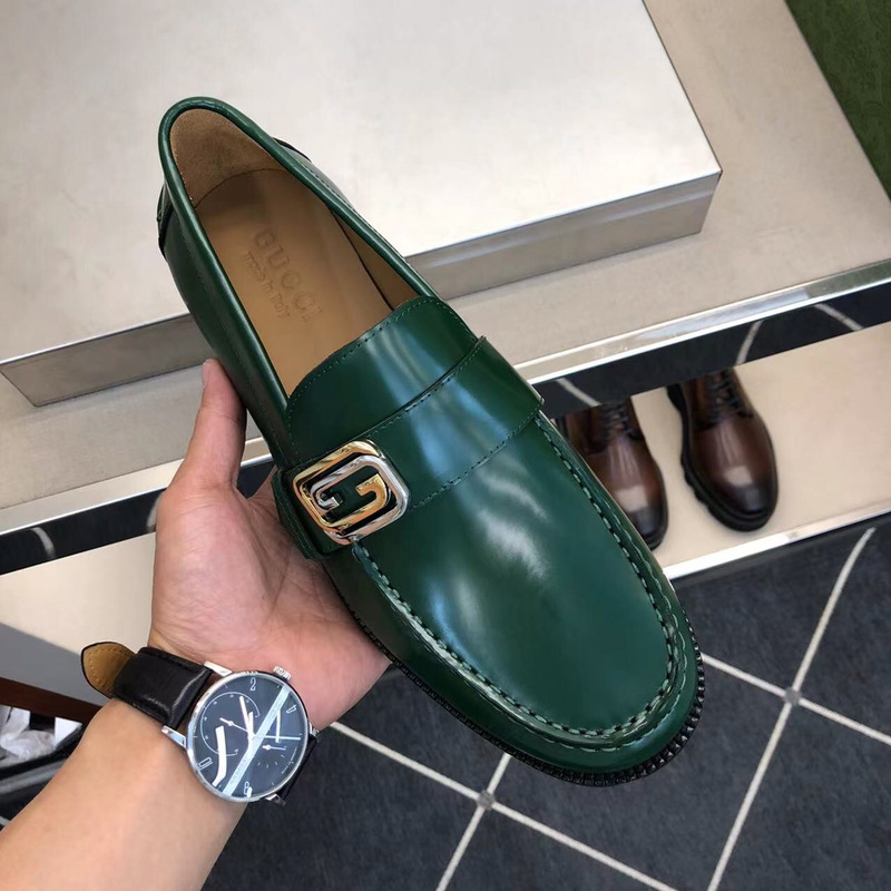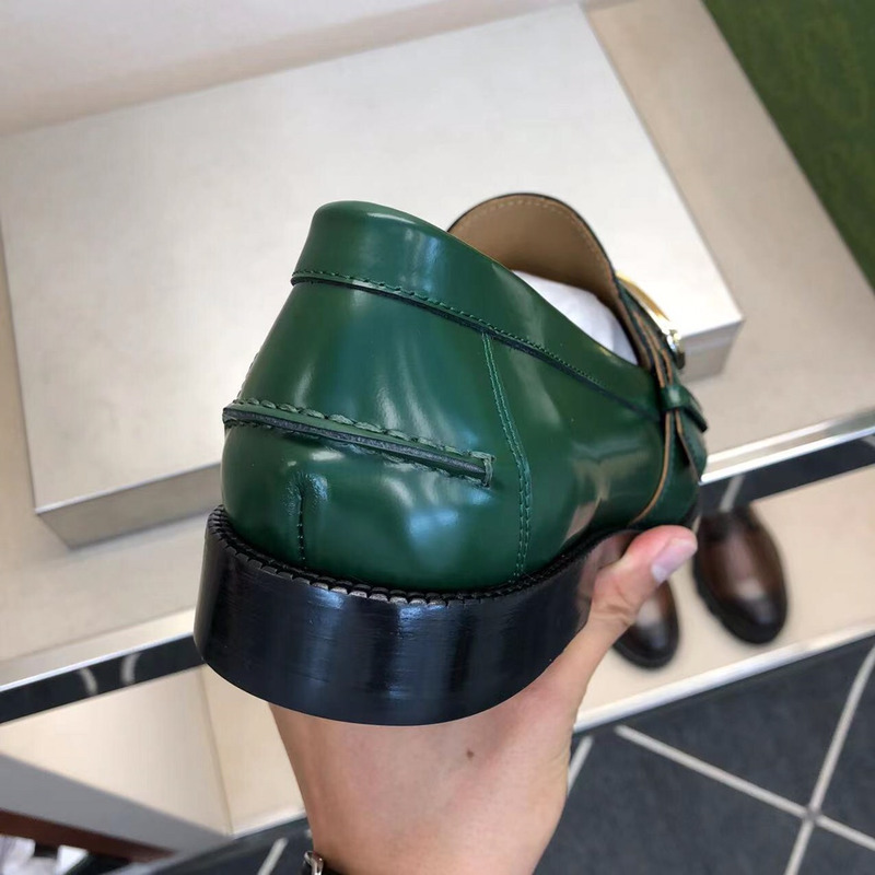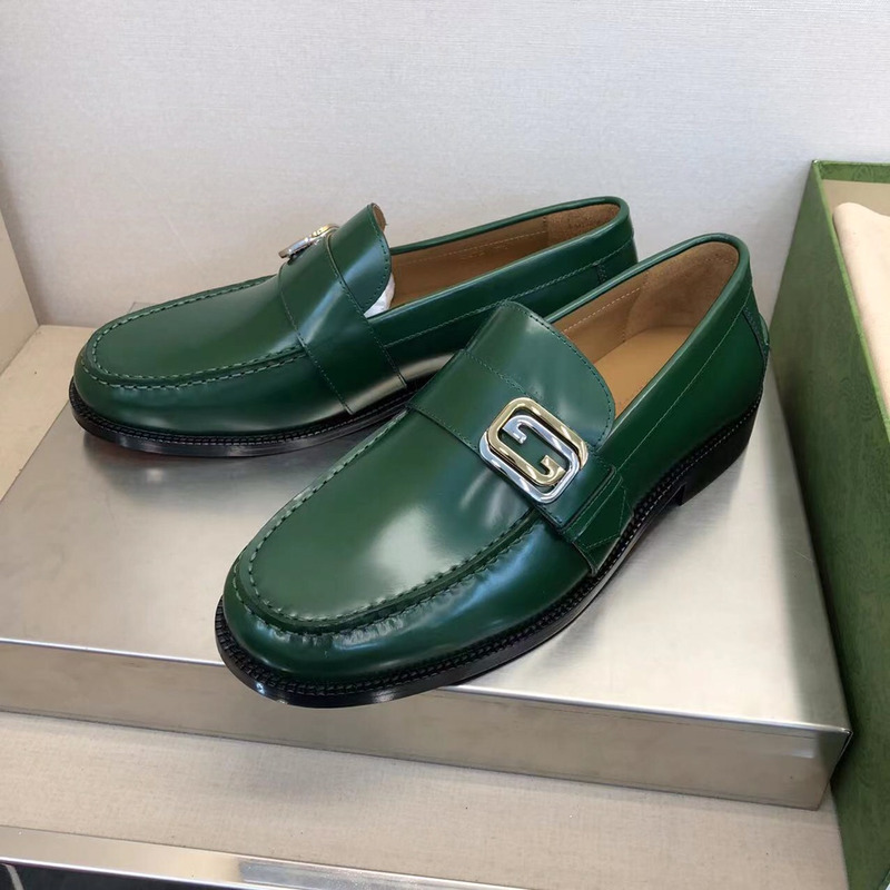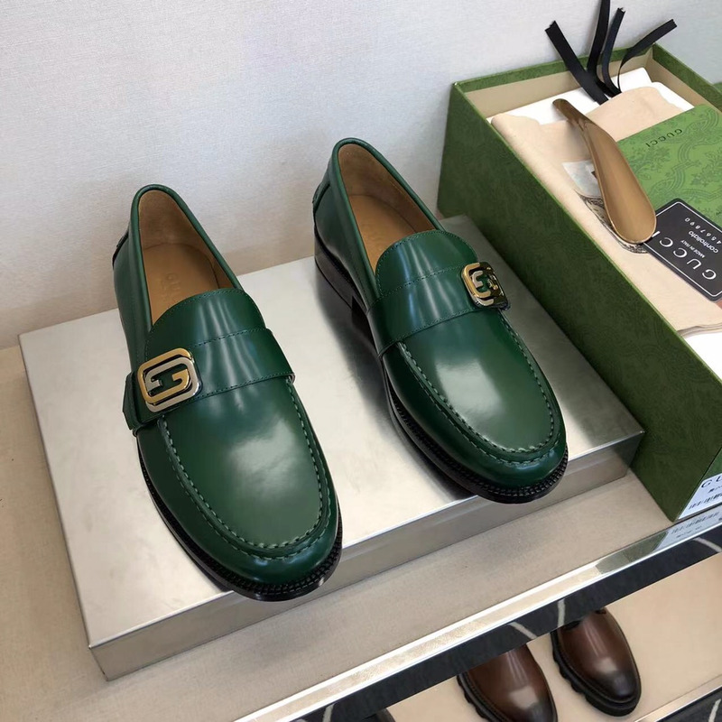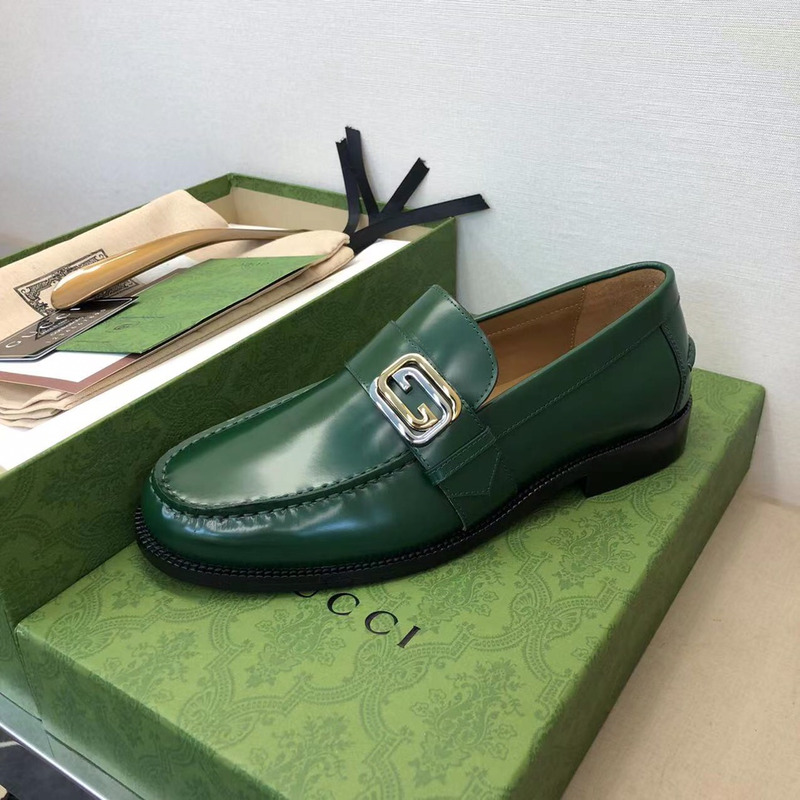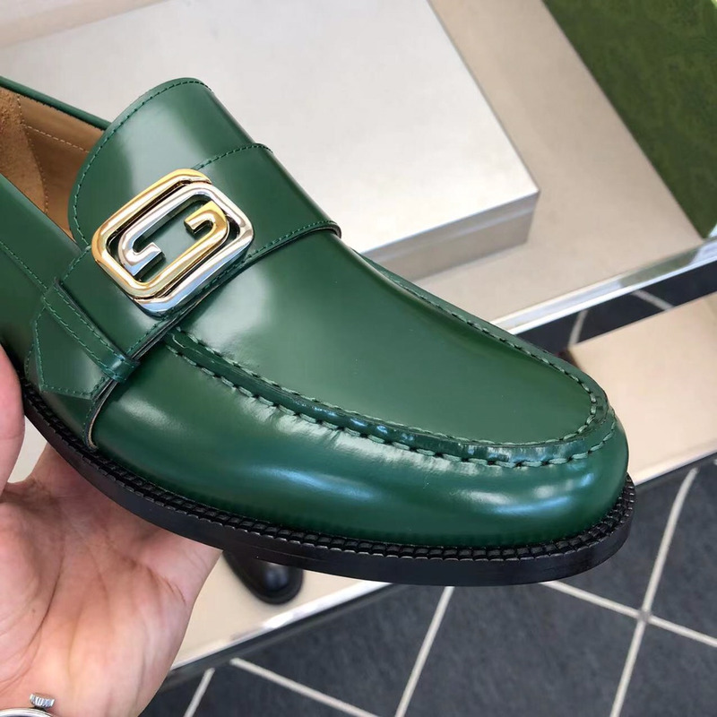 Gucci Loafer Green Polished Leather With Gold-Tone G Buckle