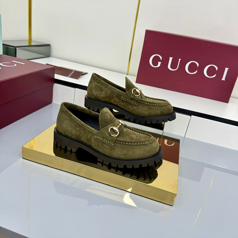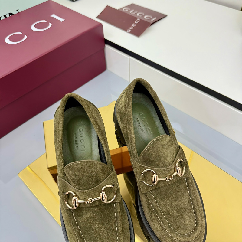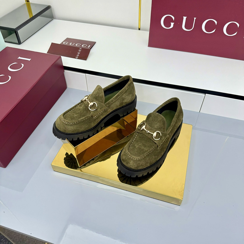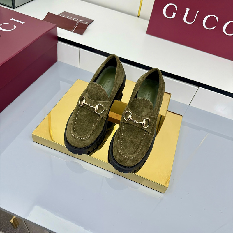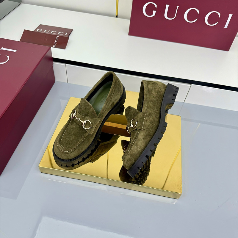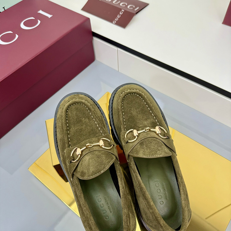 Gucci Men\'s loafer With Horsebit In Green Suede