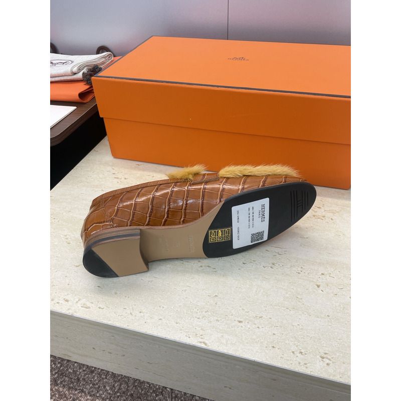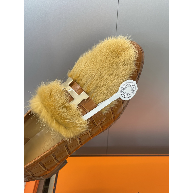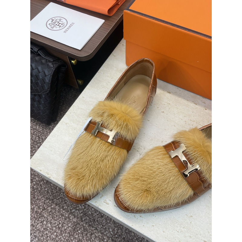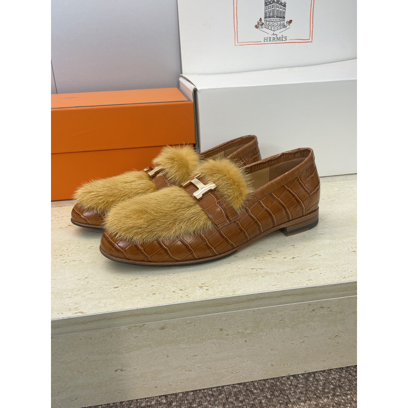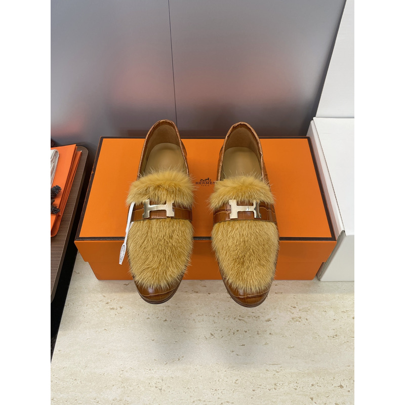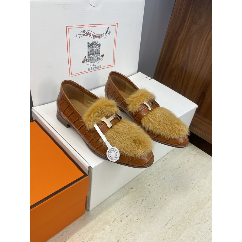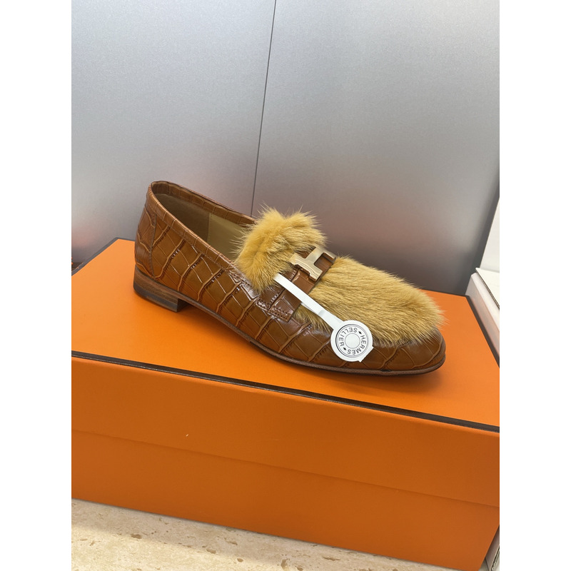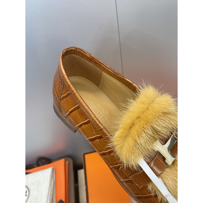 Hermes Paris Loafer In Brown Leather With Fur And H Buckle
