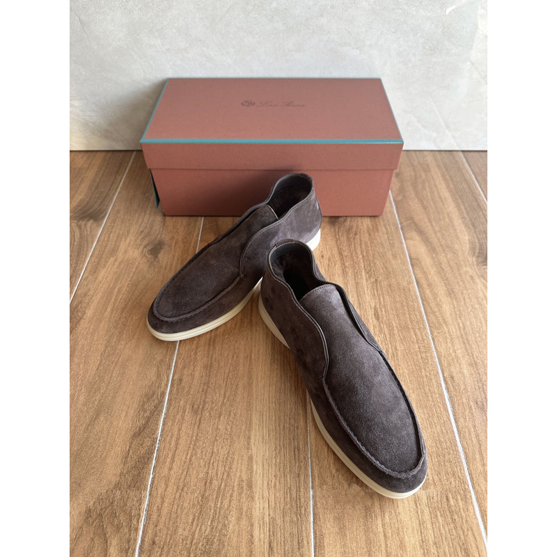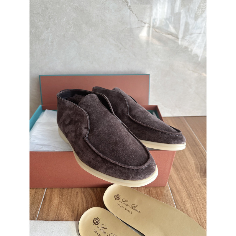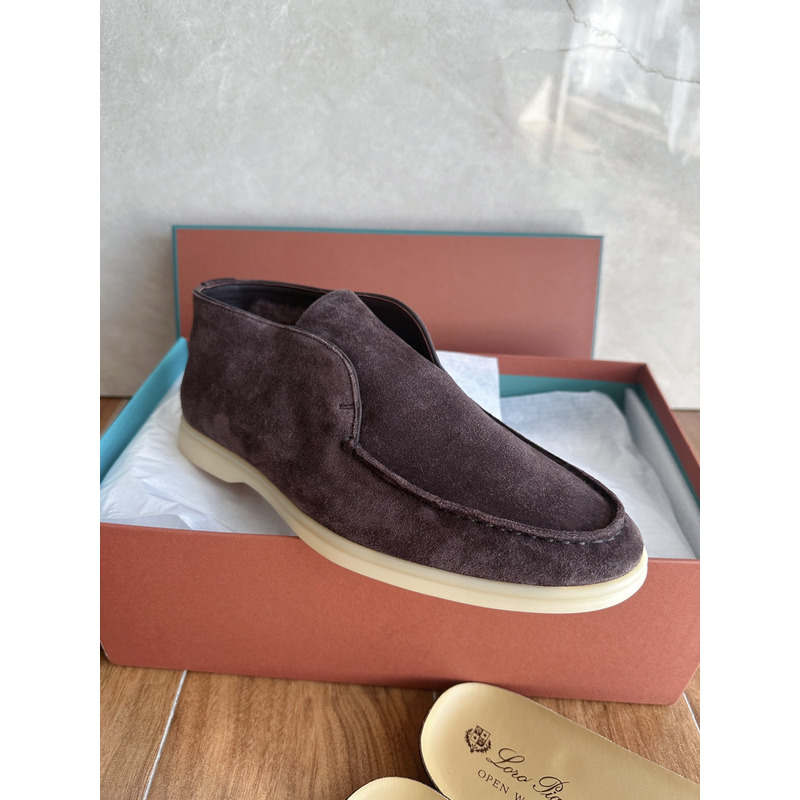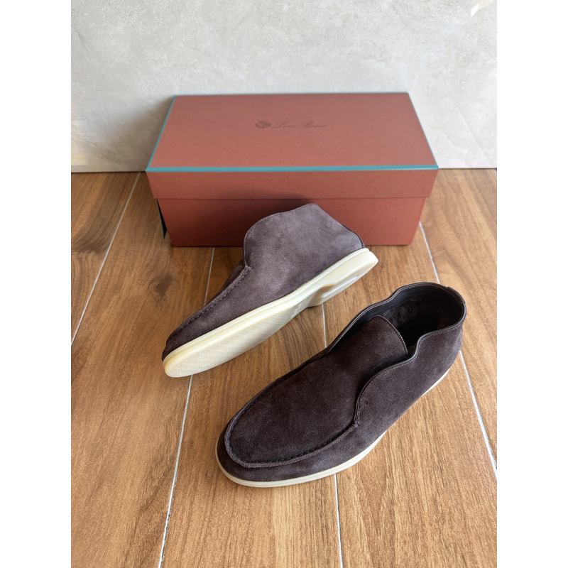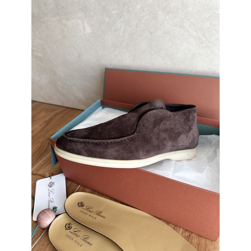 Loro Piana Open Walk Ankle Boot Suede Dark Coffee Brown