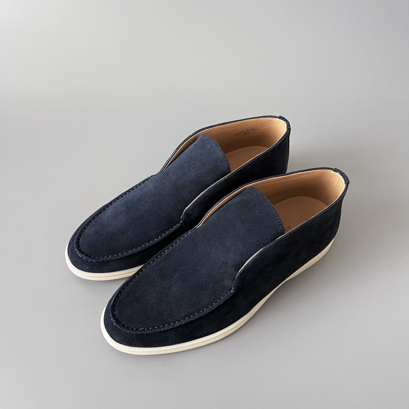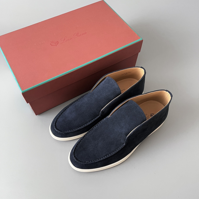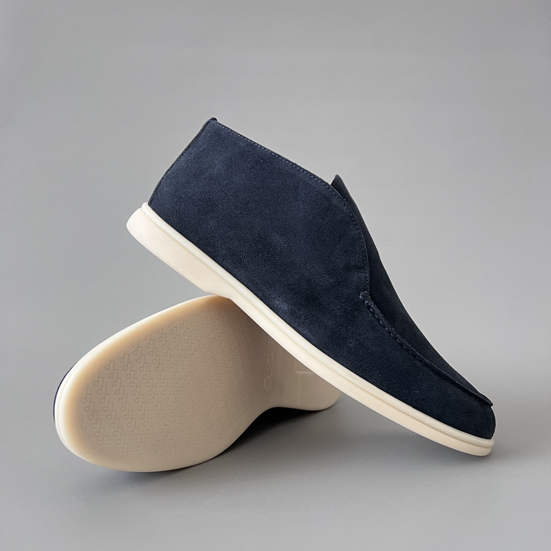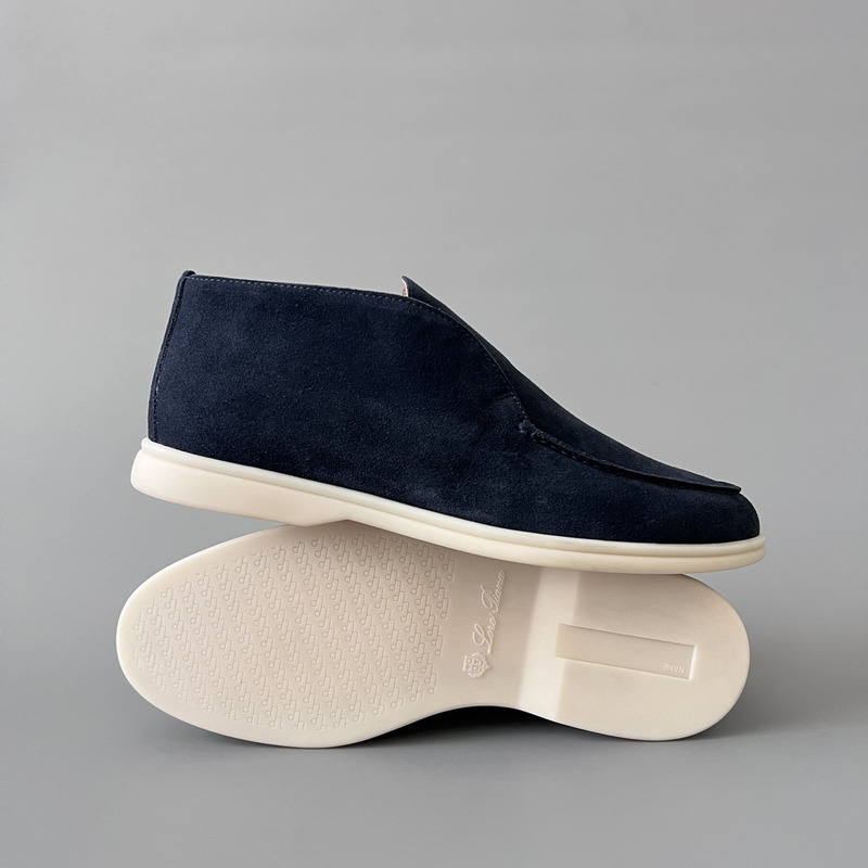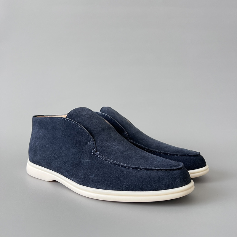 Loro Piana Open Walk Ankle Boot Suede In Dark Grayish Blue