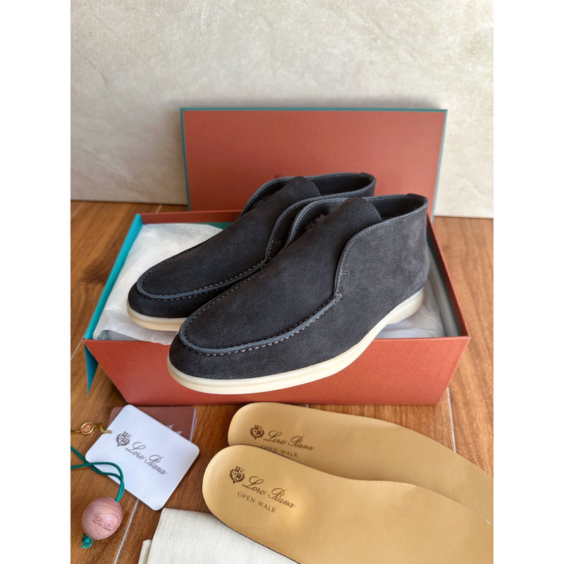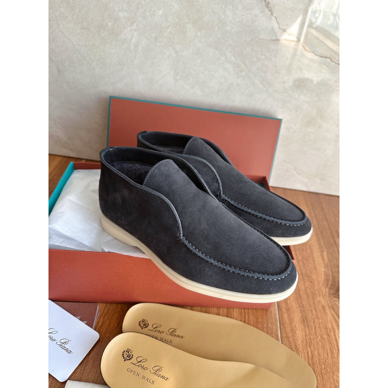 -Loro Piana Open Walk Ankle Boot Suede In Dark Grey