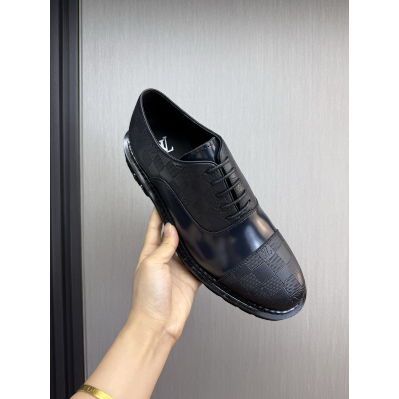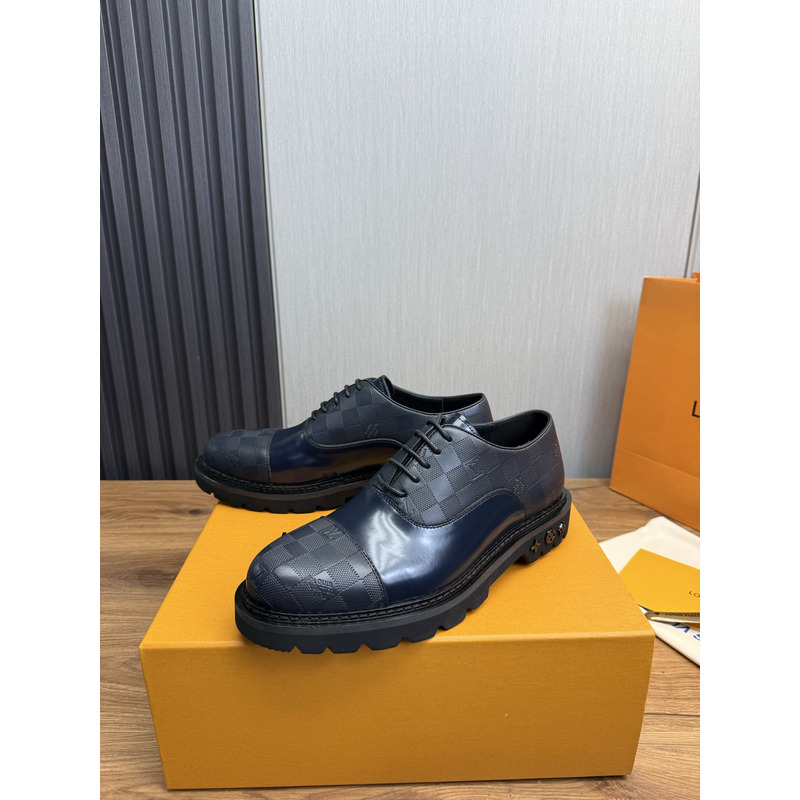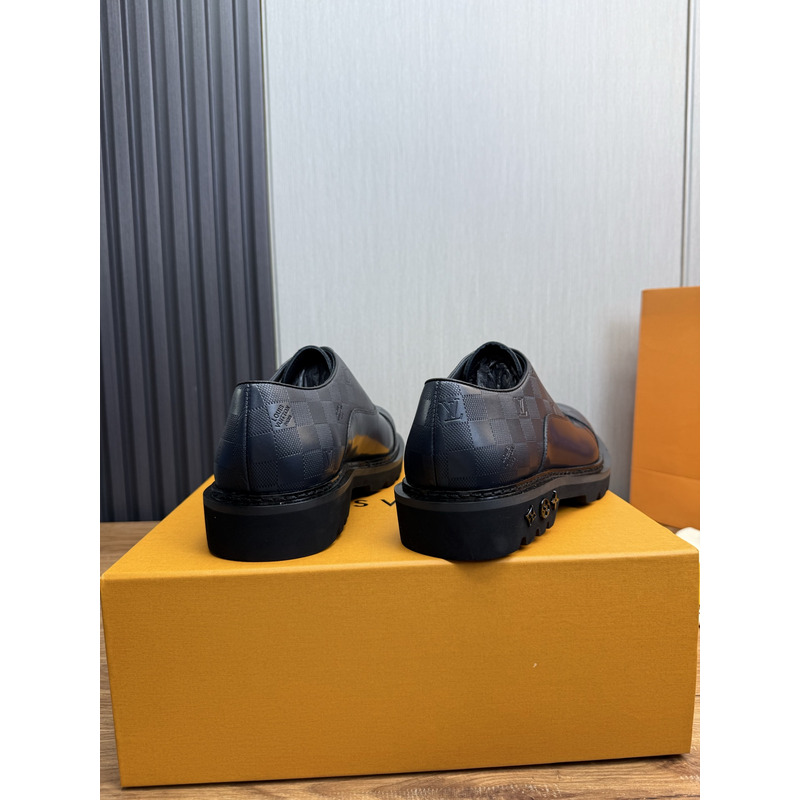 Louis Vuitton Derby Shoes In Damier Embossed Leather In Balck