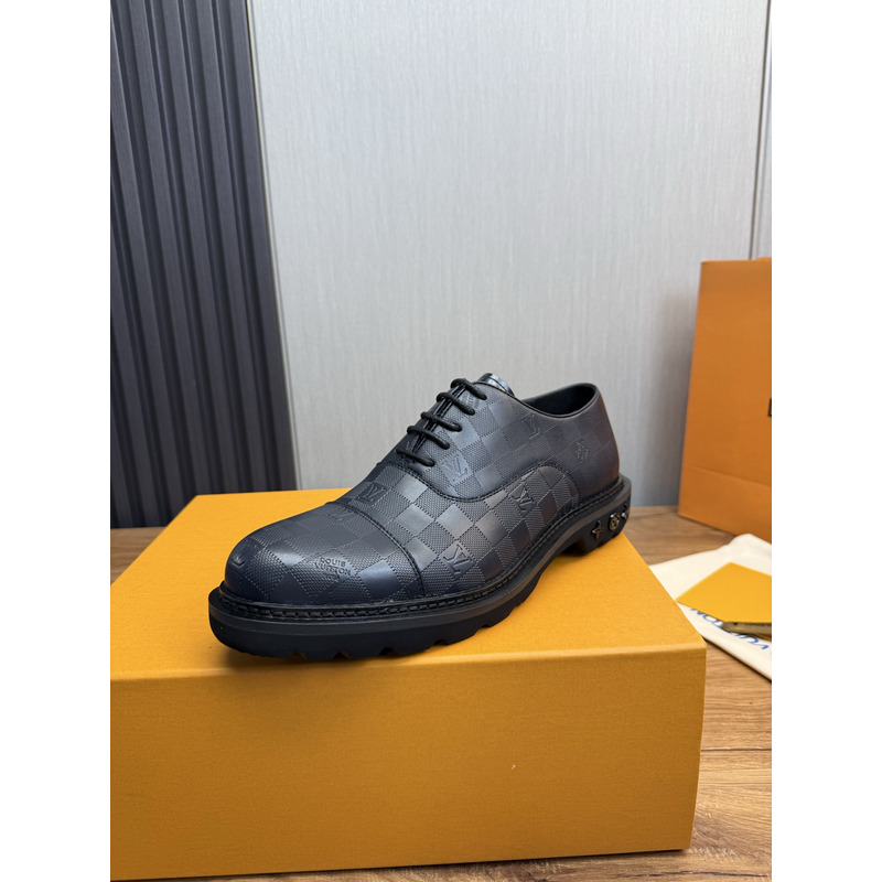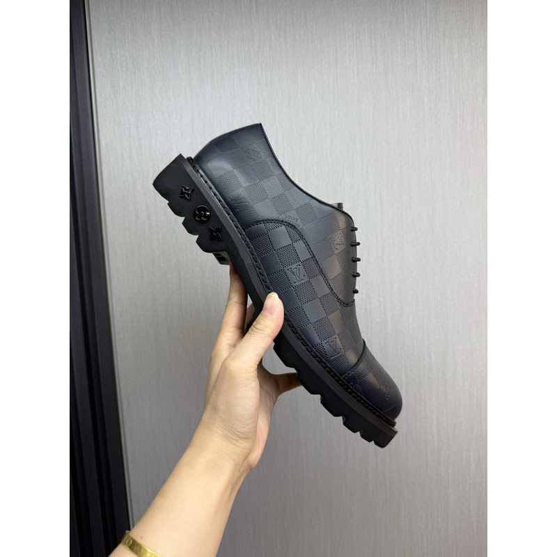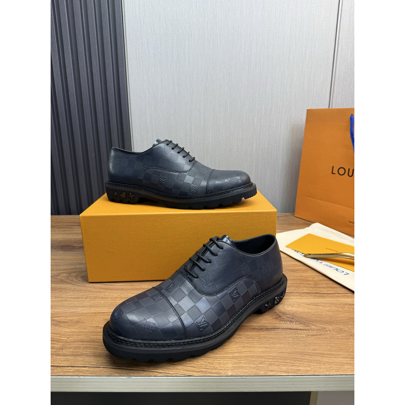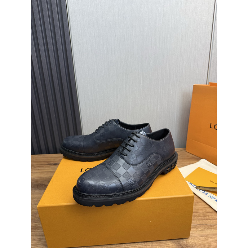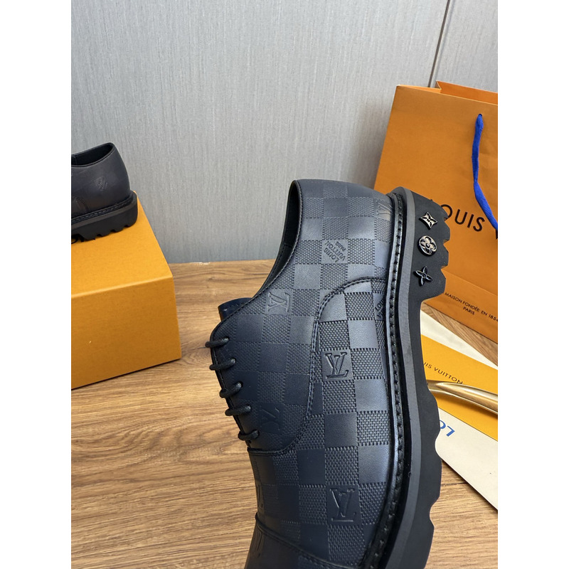 Louis Vuitton Derby Shoes In Embossed Damier Leather Black