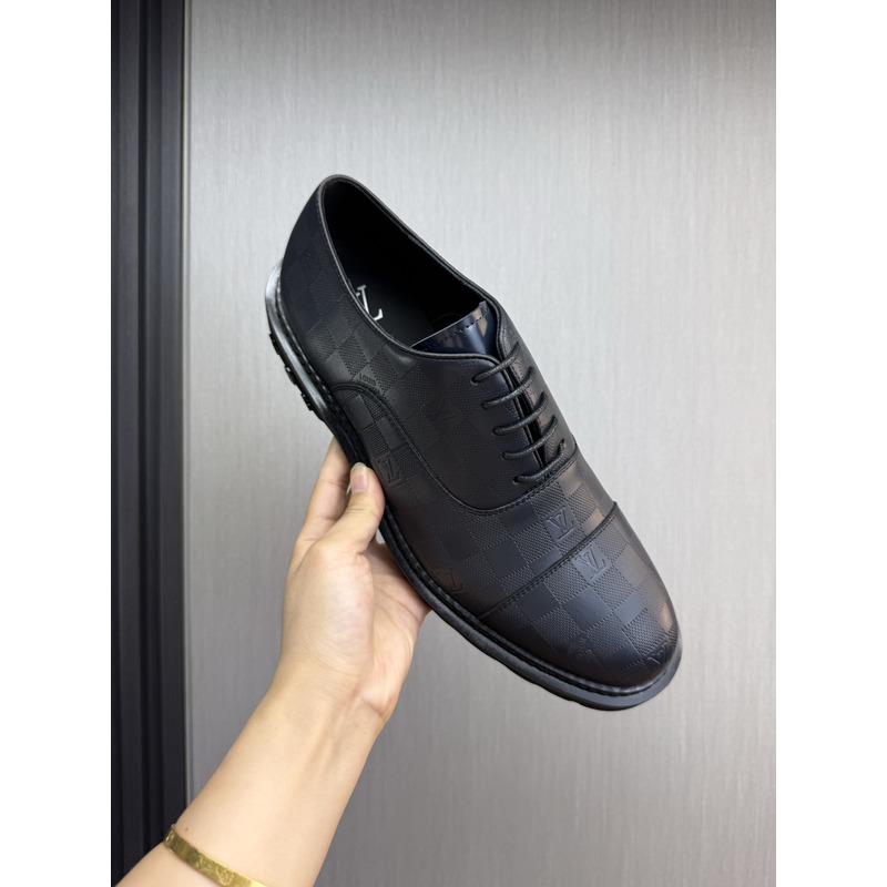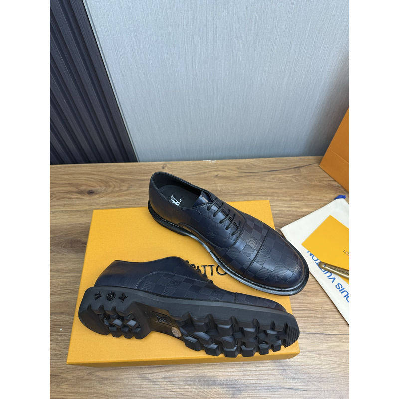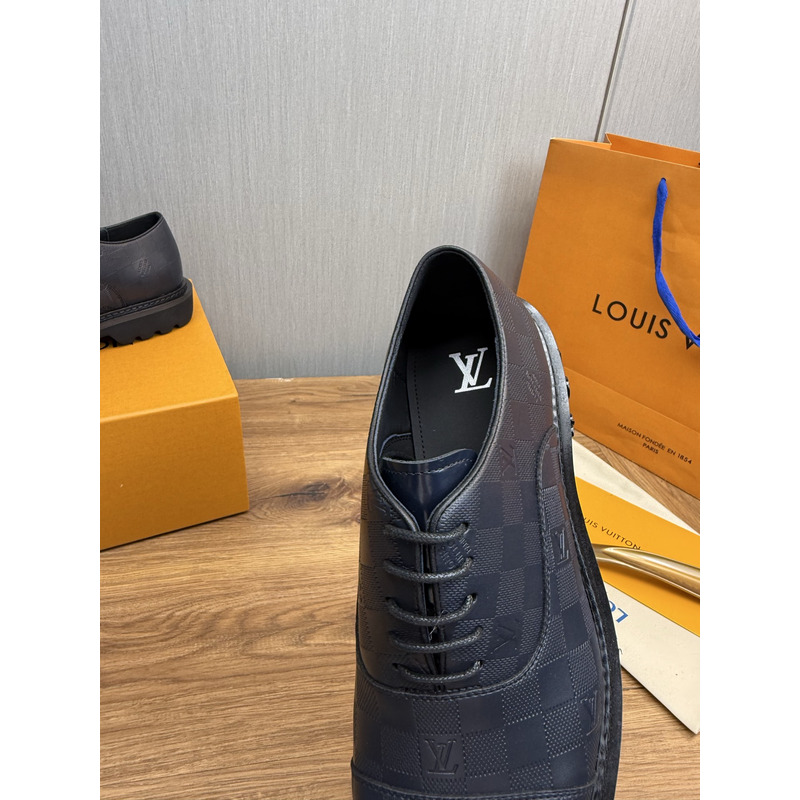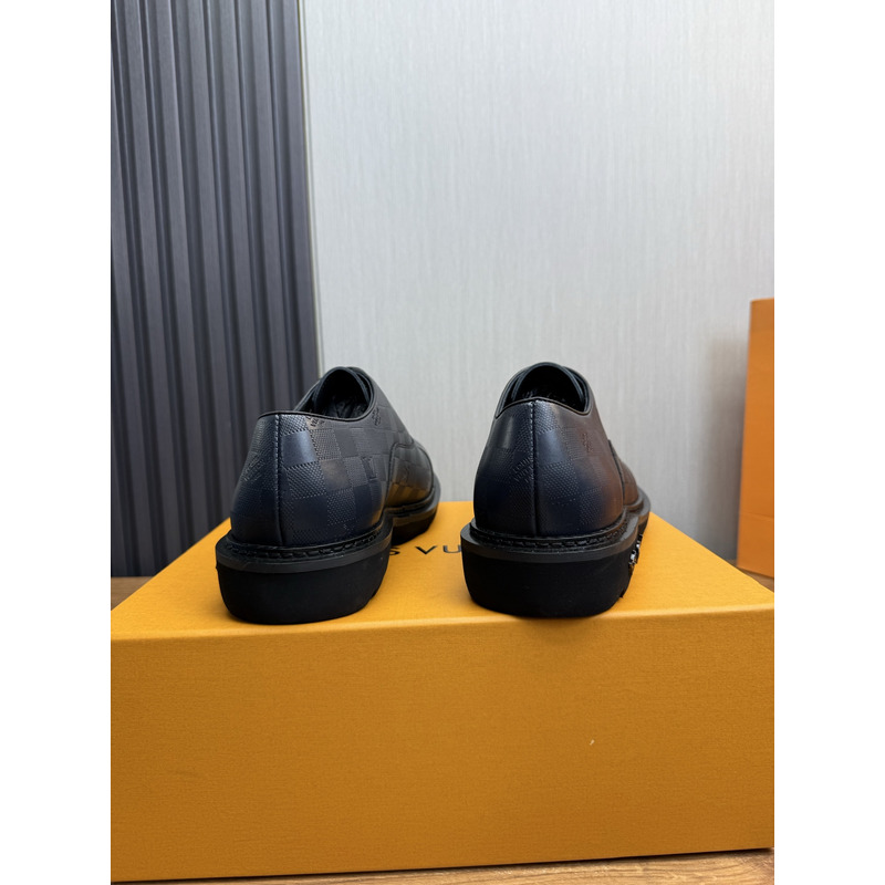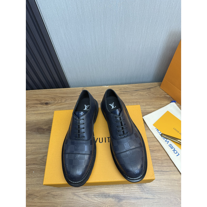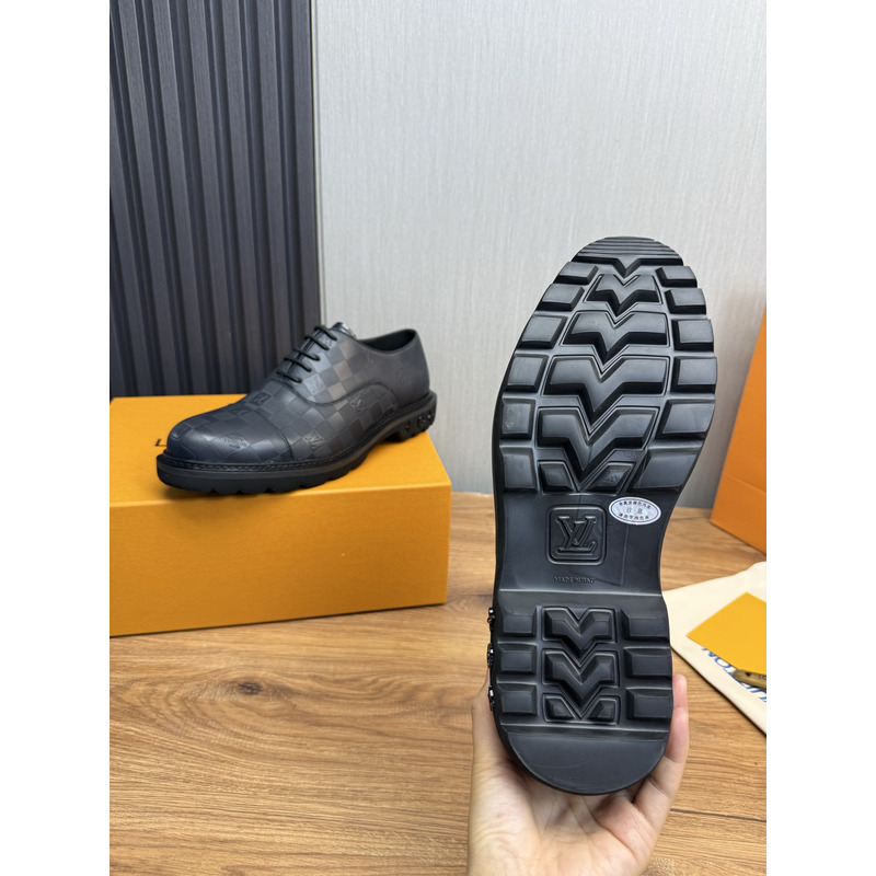 Louis Vuitton Derby Shoes In Embossed Damier Leather Black