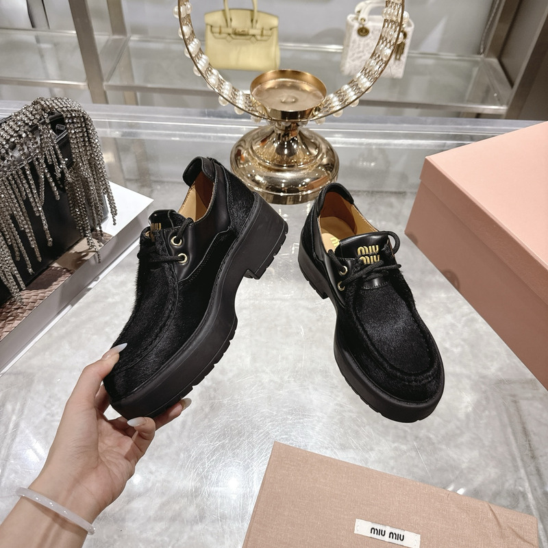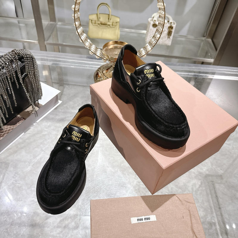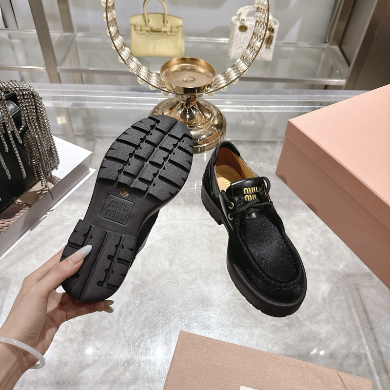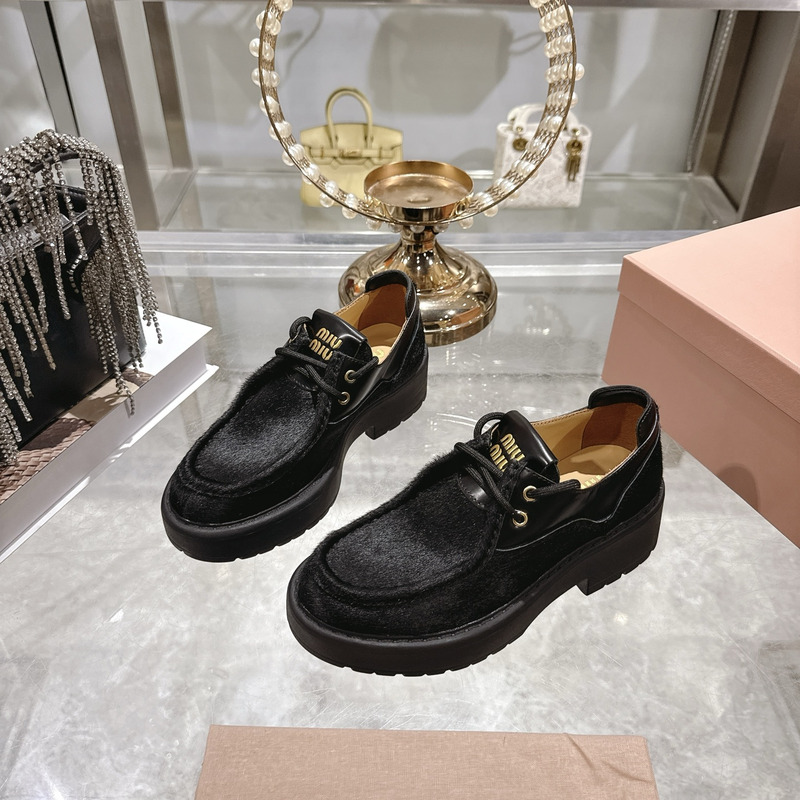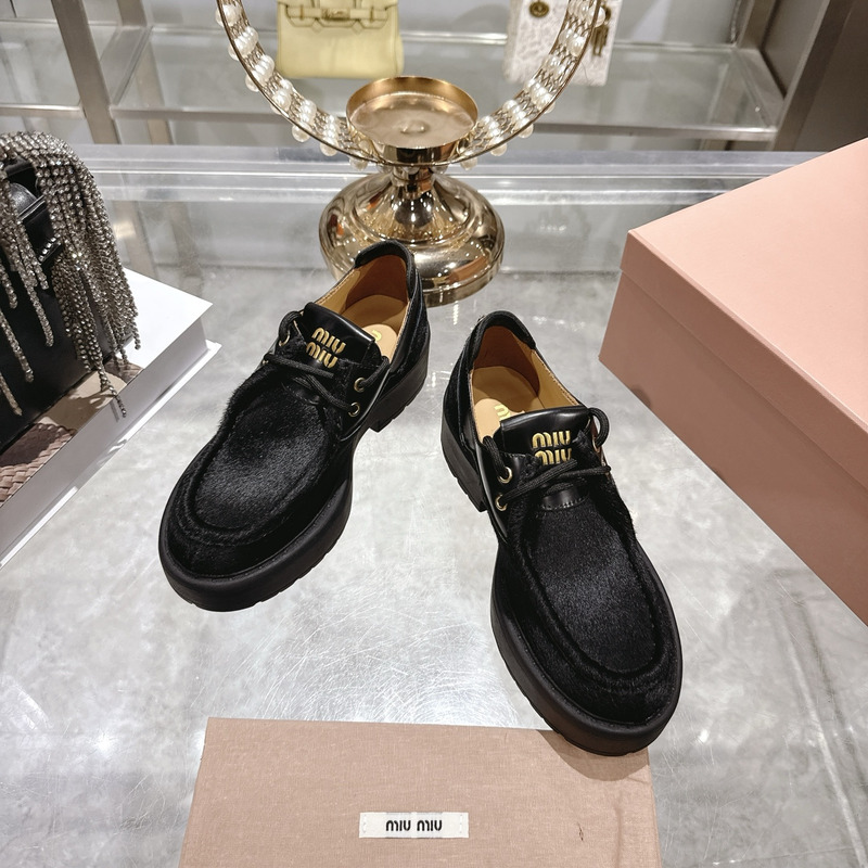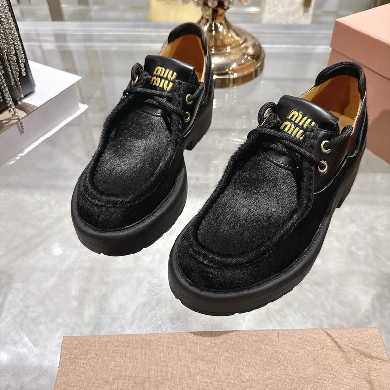 Miu Miu Black Leather And Calf Hair Leather Laced Shoes