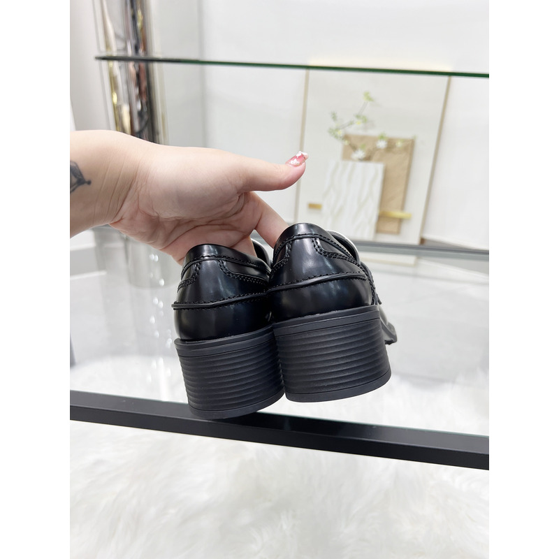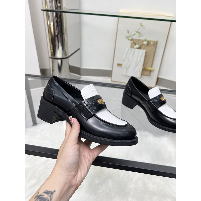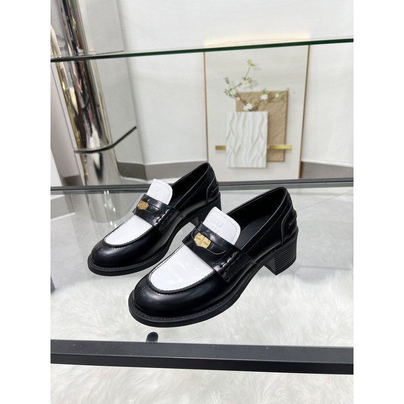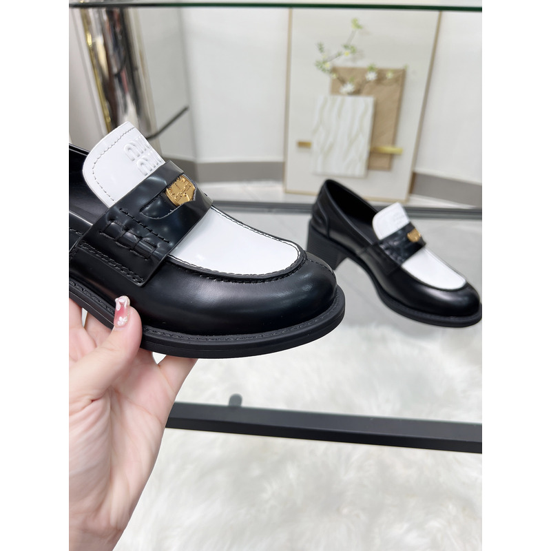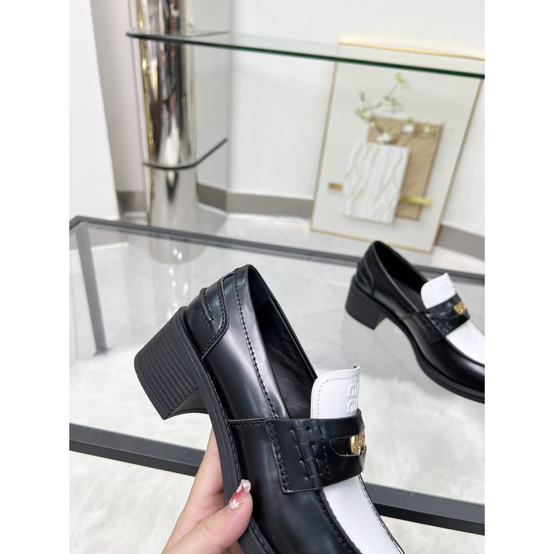 MIU MIU Black & White Leather Penny Loafers With Gold-Tone Coin Detail
