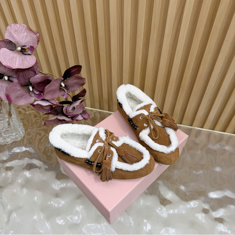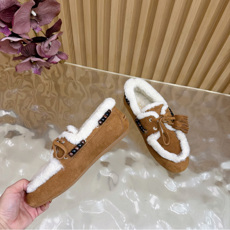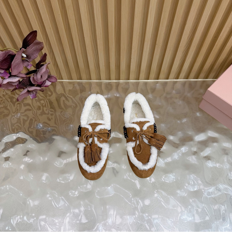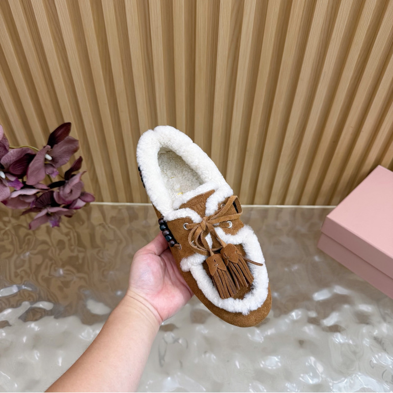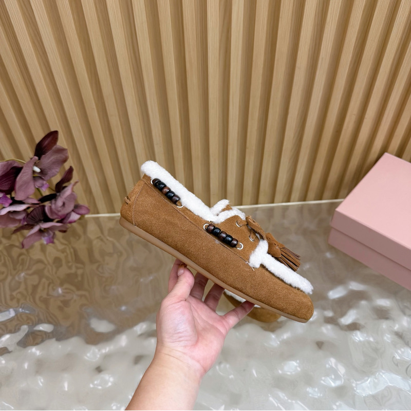 Miu Miu Shearling-Lined Suede Moccasin Shoes In Brown