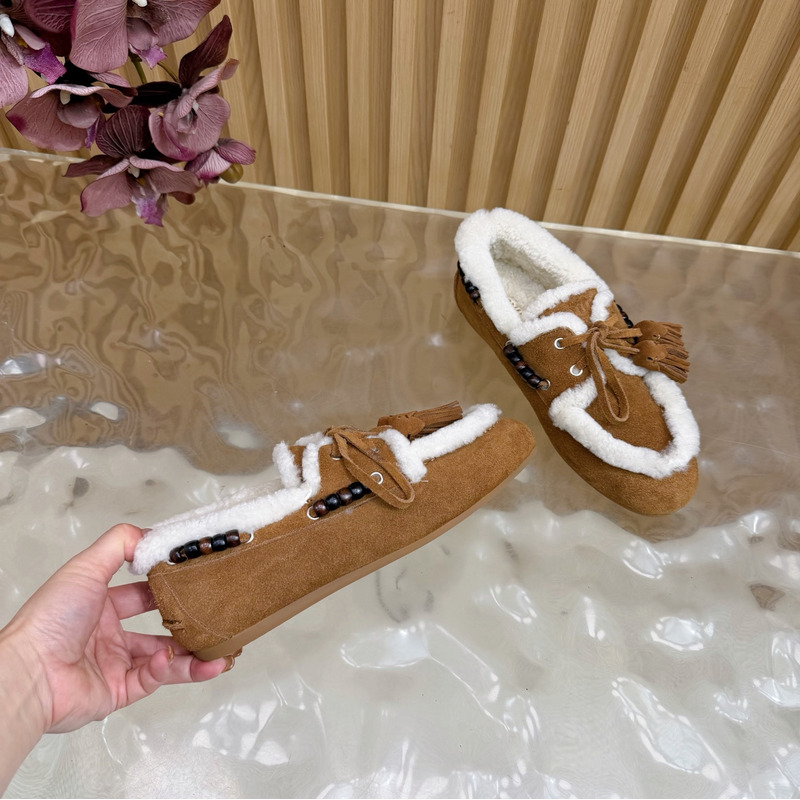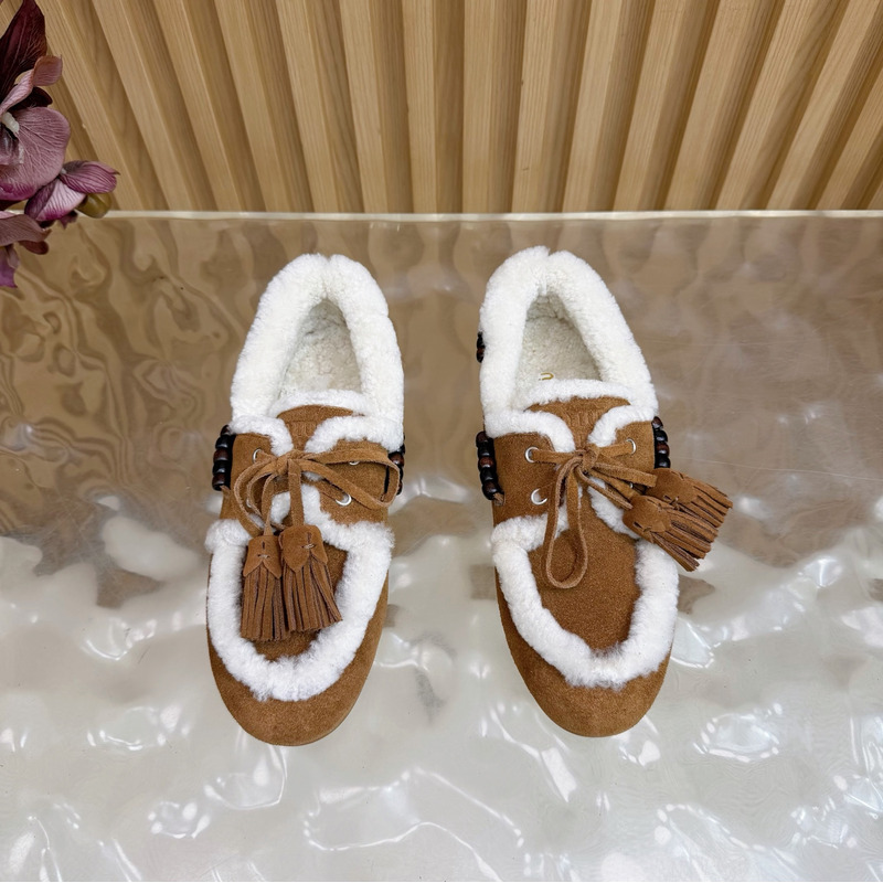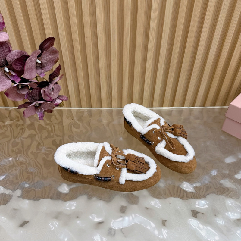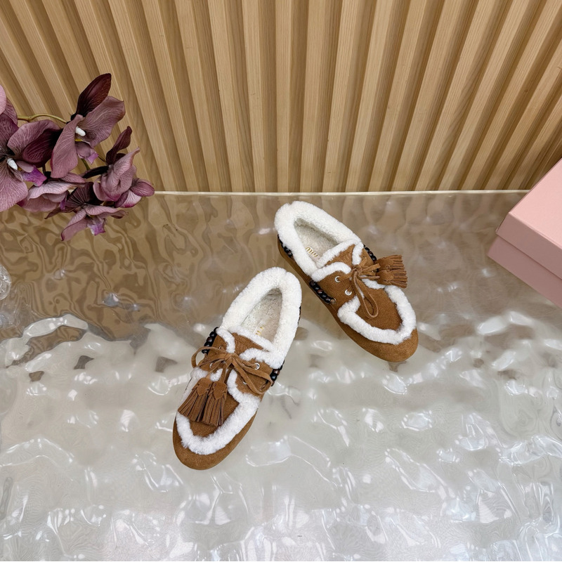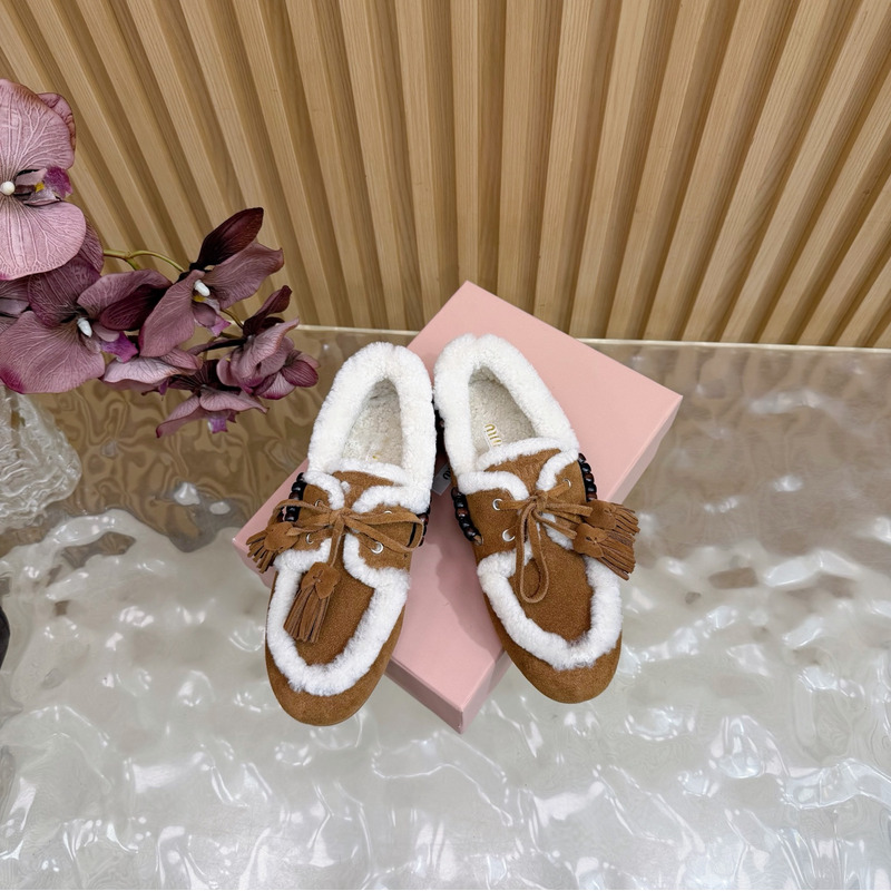 Miu Miu Shearling-Lined Suede Moccasin Shoes In Brown