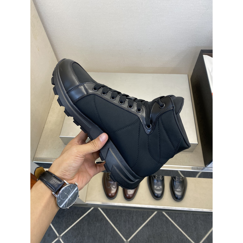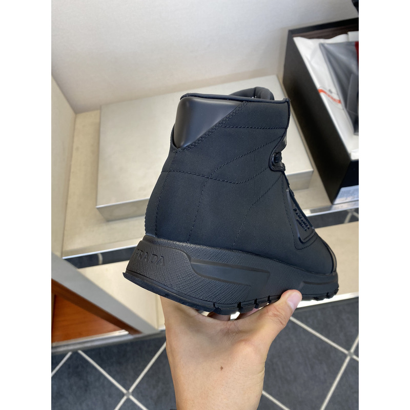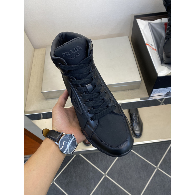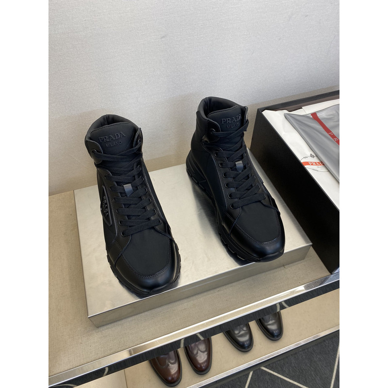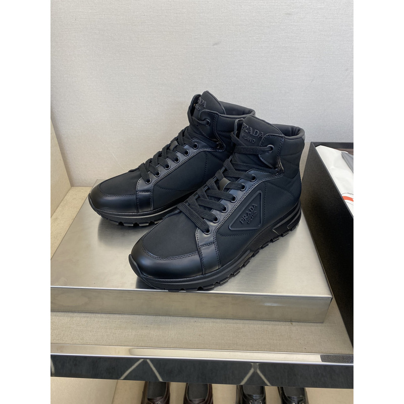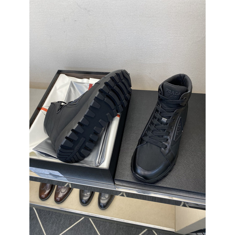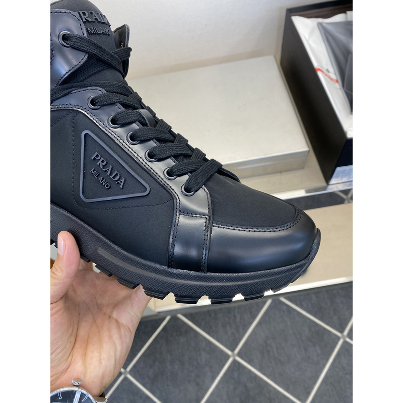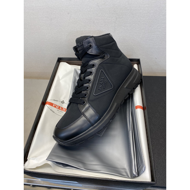 Prada Black Technical Fabric And Leather High-Top Sneakers With Logo Detail