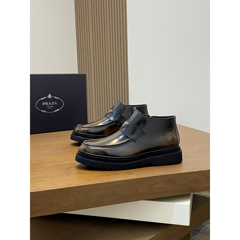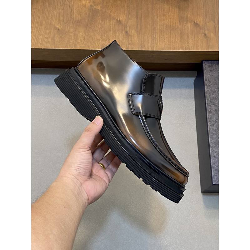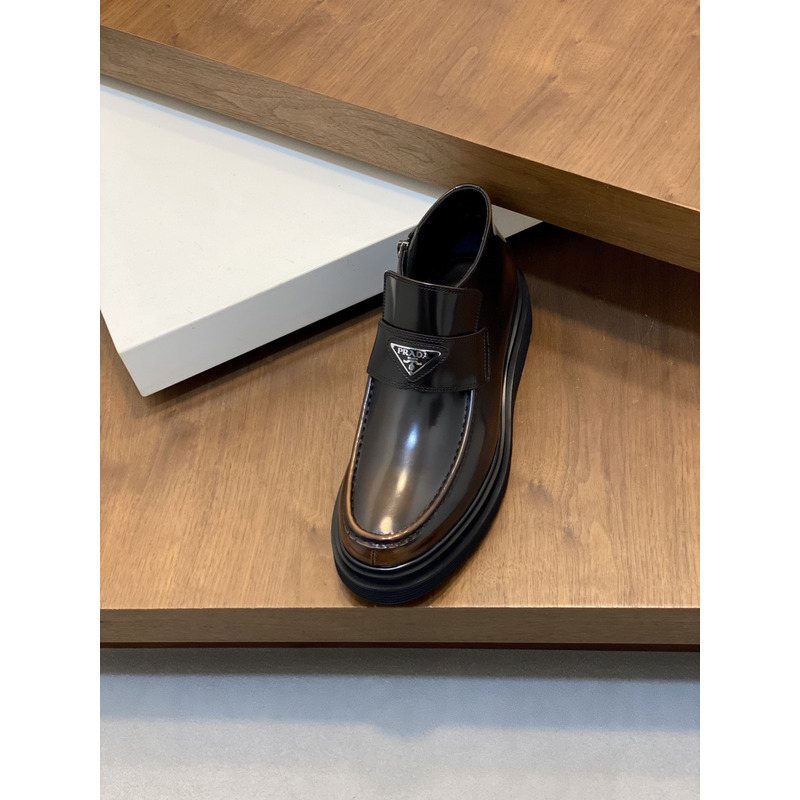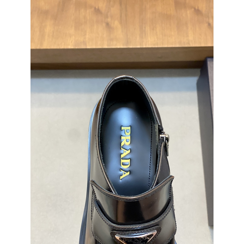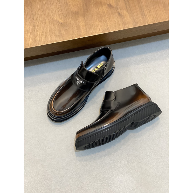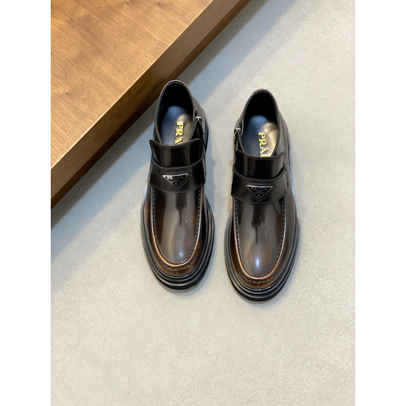 Prada Monolith Patent Leather Loafers Deep Reddish Brown