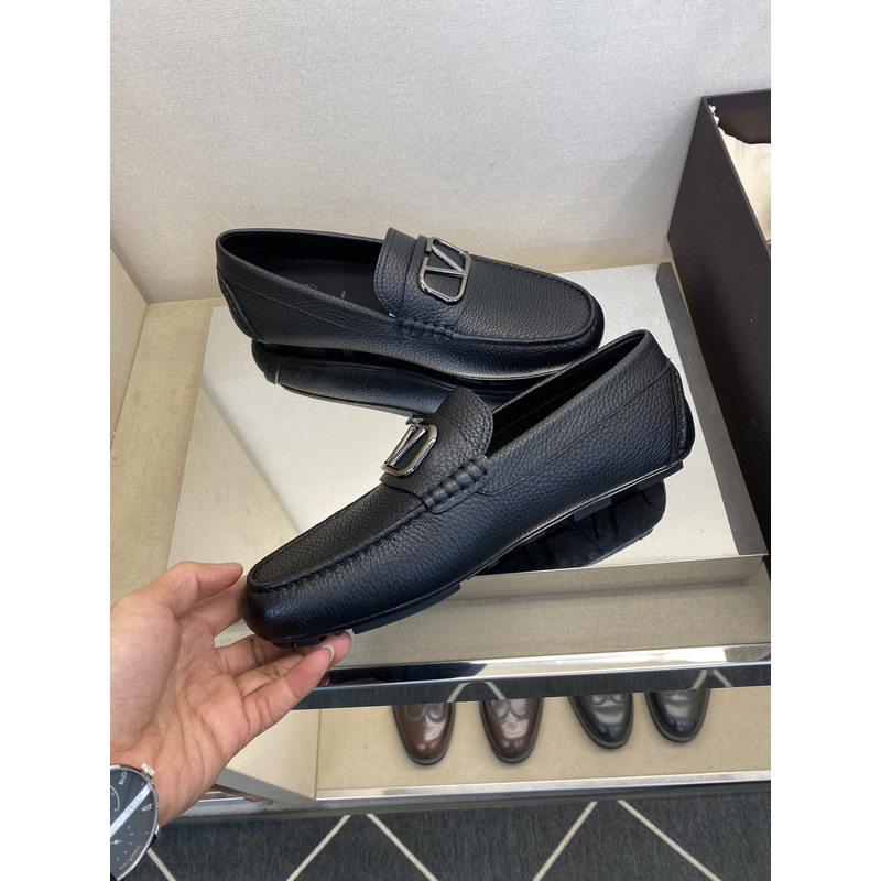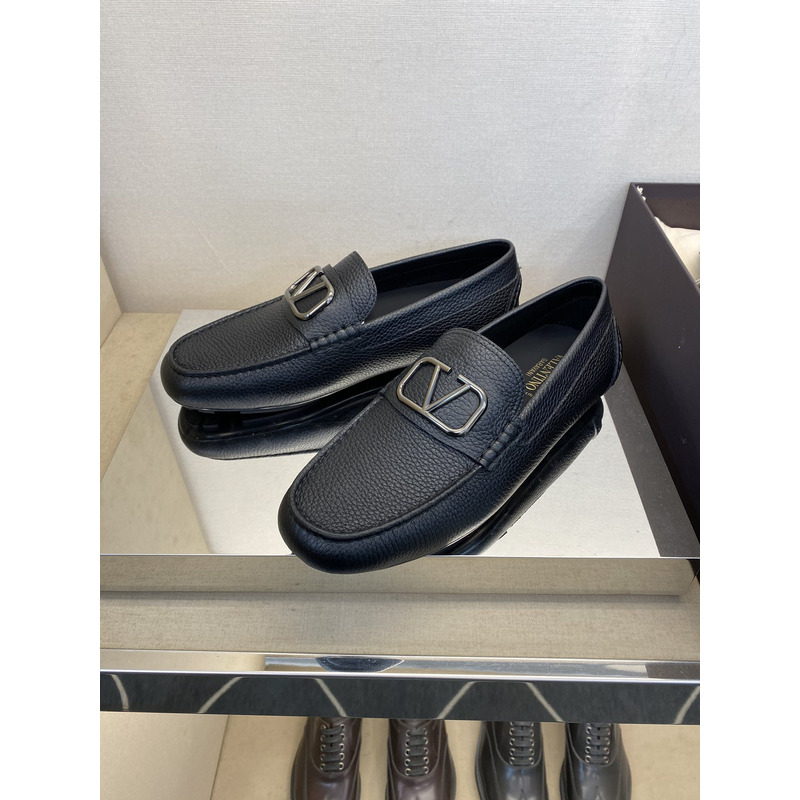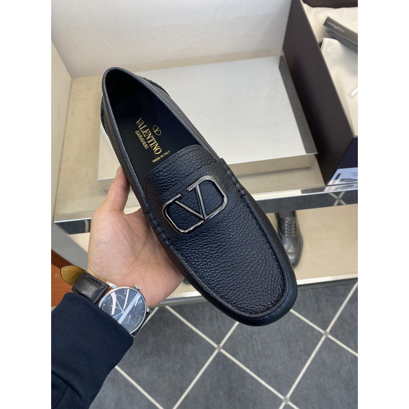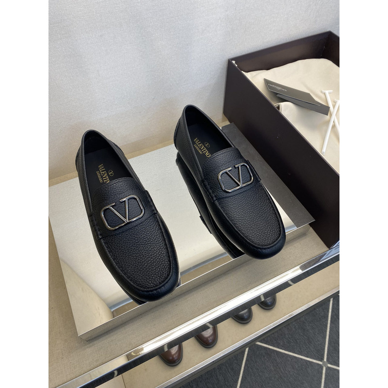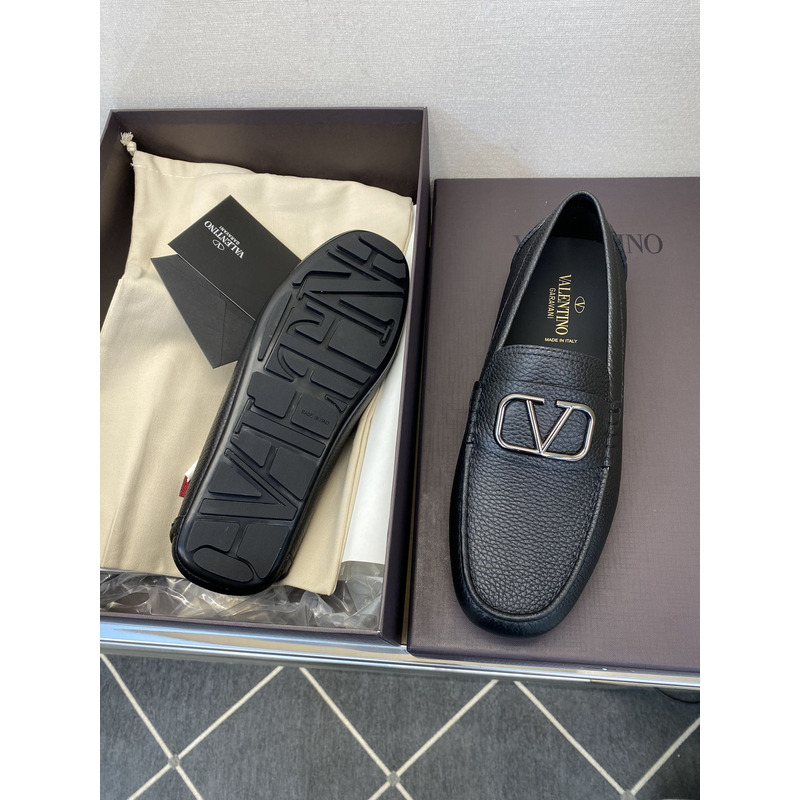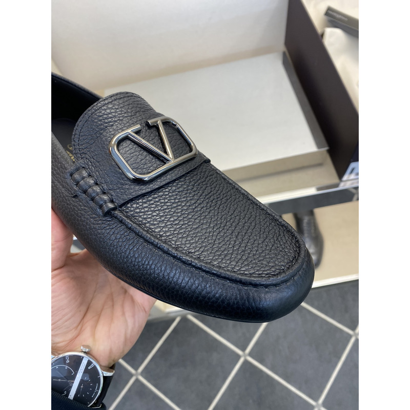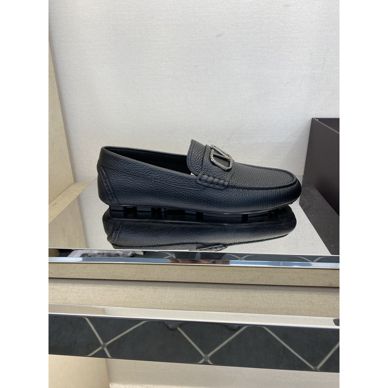 Valentino Garavani VLogo Signature Grainy Leather Loafers In Black