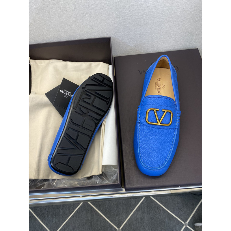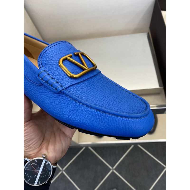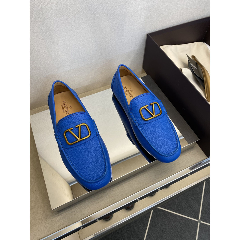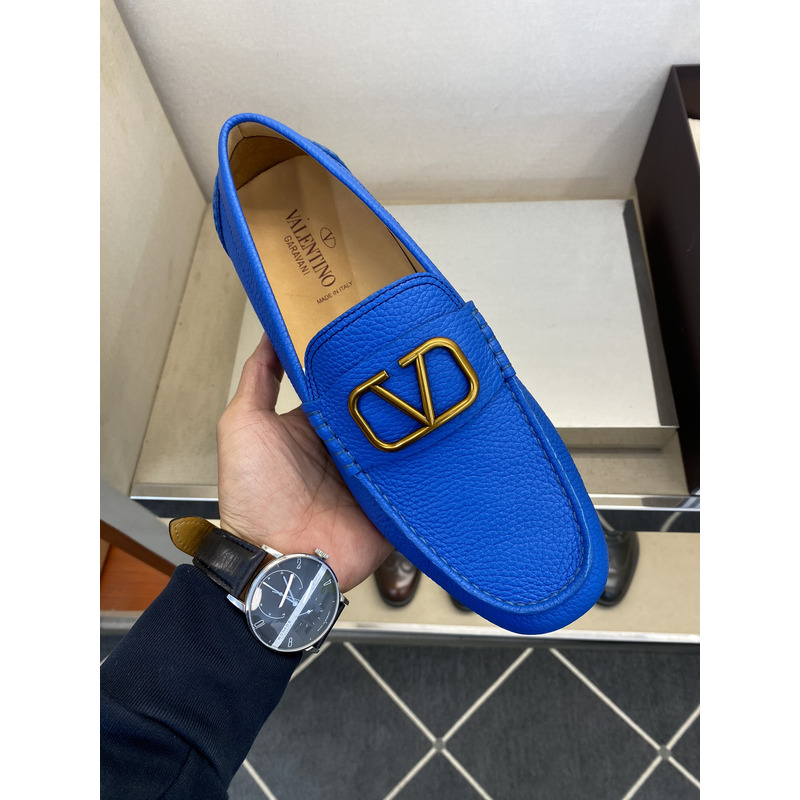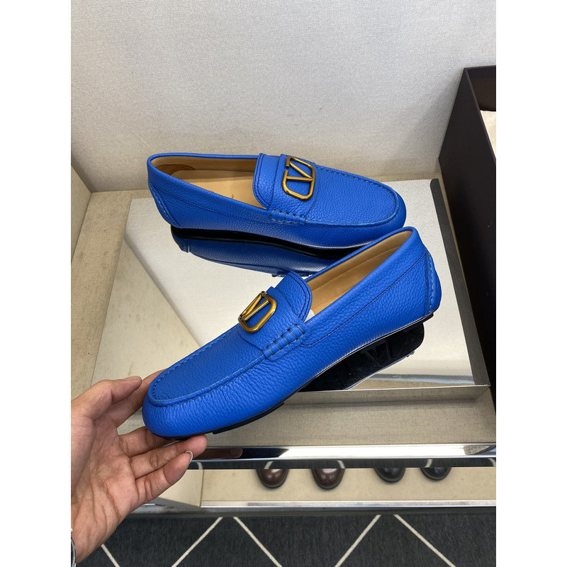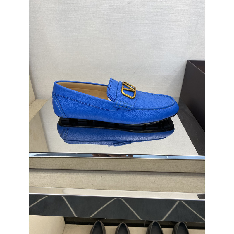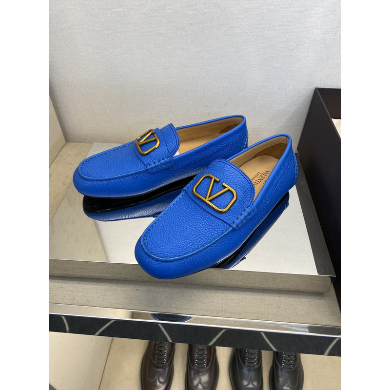 Valentino Garavani VLogo Signature Grainy Leather Loafers In Blue